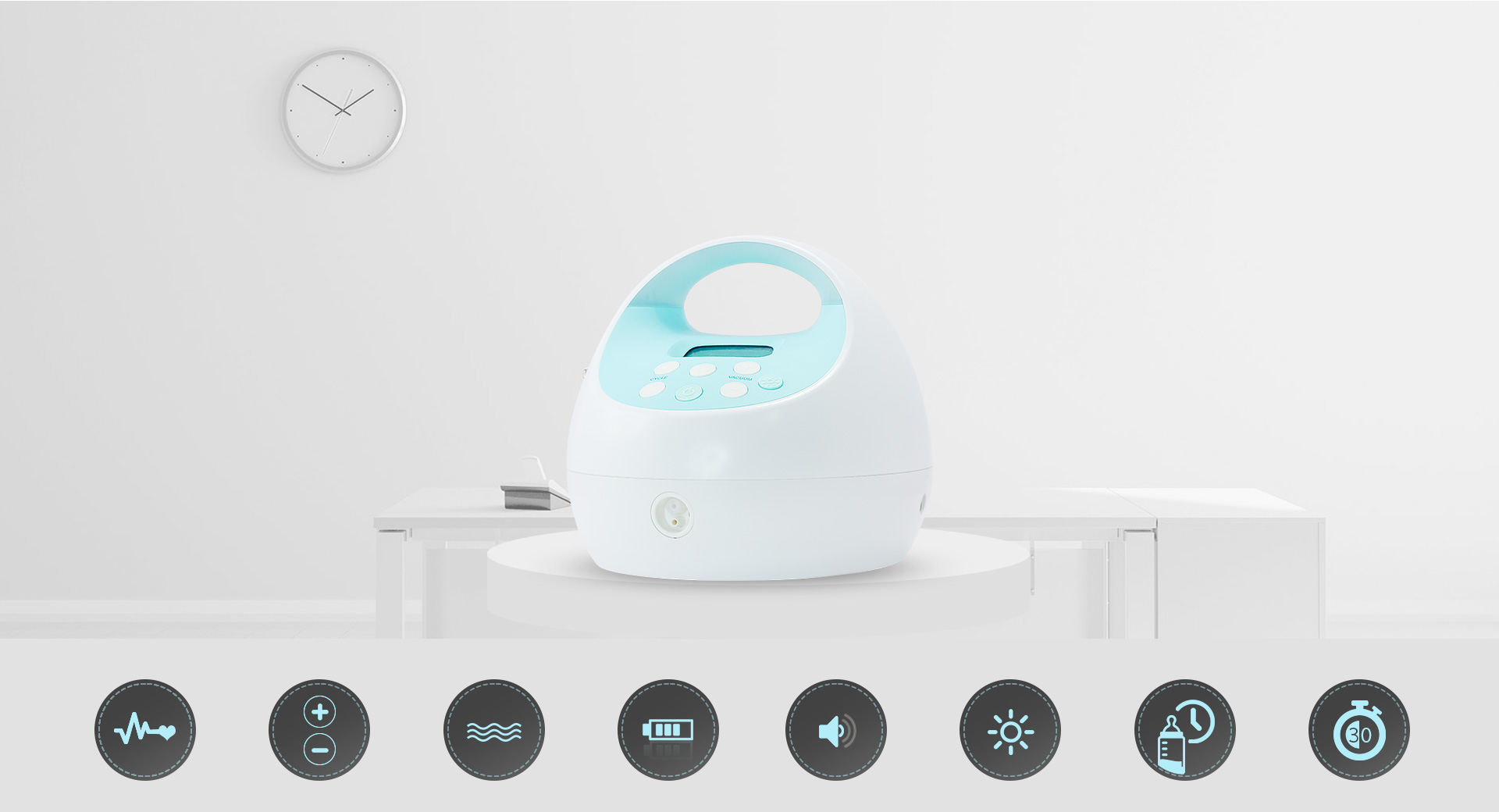 - Screen LCD displays, the duration of breast pumps, and various functions during working.