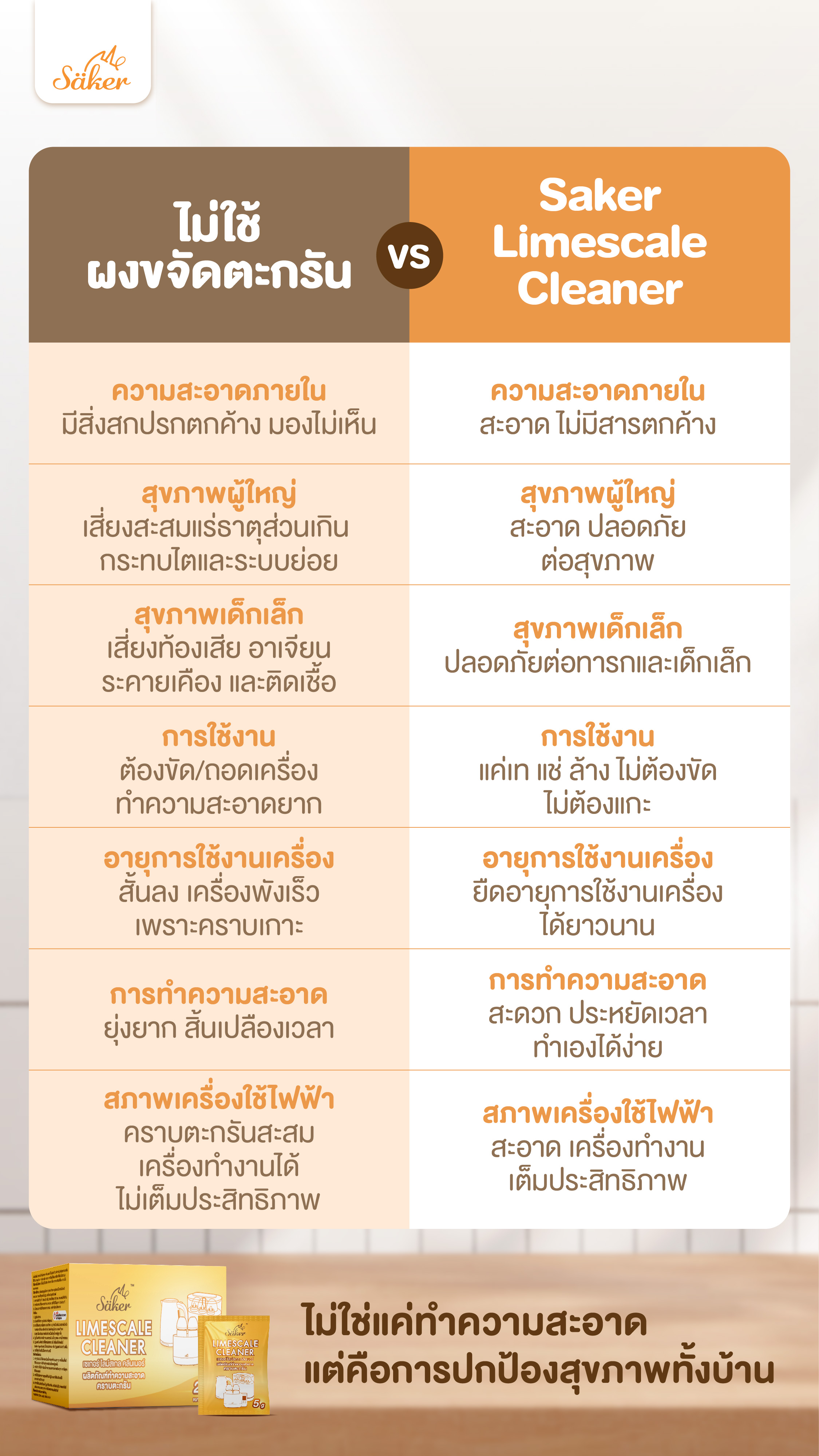 👉หมดยุคที่จะต้องมานั่งผสมน้ำยาและลงแรงขัดแล้ว! จะดีกว่ามั้ยถ้าคุณมีตัวช่วยดี ๆ อย่าง Saker Limescale Cleaner ผงกำจัดคราบตะกรัน