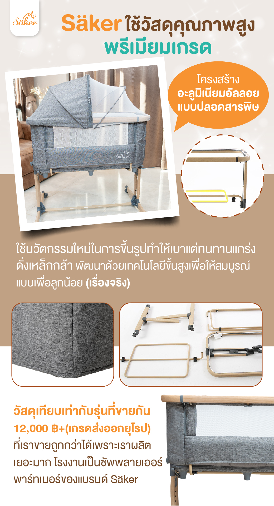 Säker ใช้วัสดุคุณภาพสูง พรีเมี่ยมเกรด โครงสร้างอะลูมิเนียมอัลลอยแบบปลอดสารพิษ🌱 ใช้นวัตกรรมใหม่ในการขึ้นรูปทำให้เบาแต่ทนทานแกร่งดั่งเหล็กกล้า พัฒนาด้วยเทคโนโลยีขั้นสูงเพื่อสมบูรณ์แบบเพื่อลูกน้อย (เรื่องจริง)วัสดุเทียบเท่ากับรุ่นที่ขายกัน 12,000฿+(เกรดส่งออกยุโรป‼️) ที่เราขายถูกกว่าได้เพราะเราผลิตเยอะมาก โรงงานเป็นซัพพลายเออร์พาร์ทเนอร์ของแบรนด์ Säker