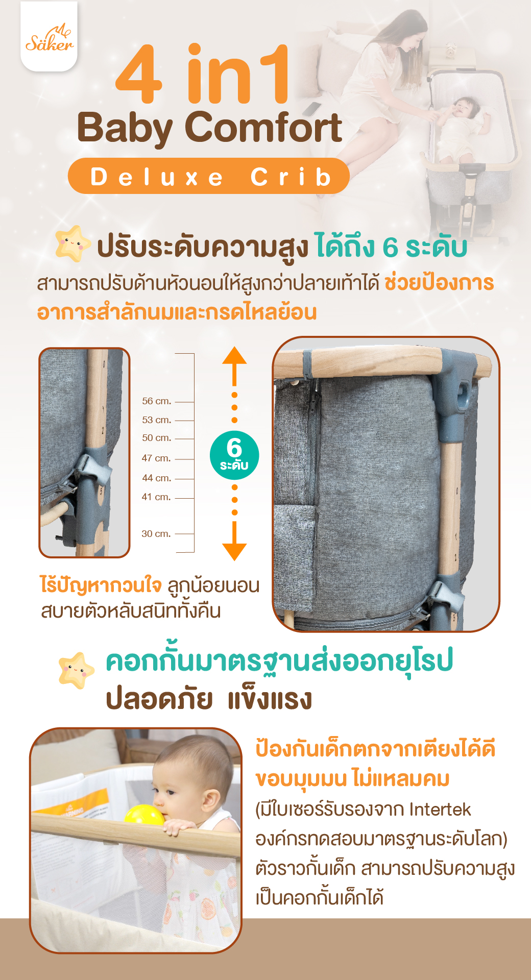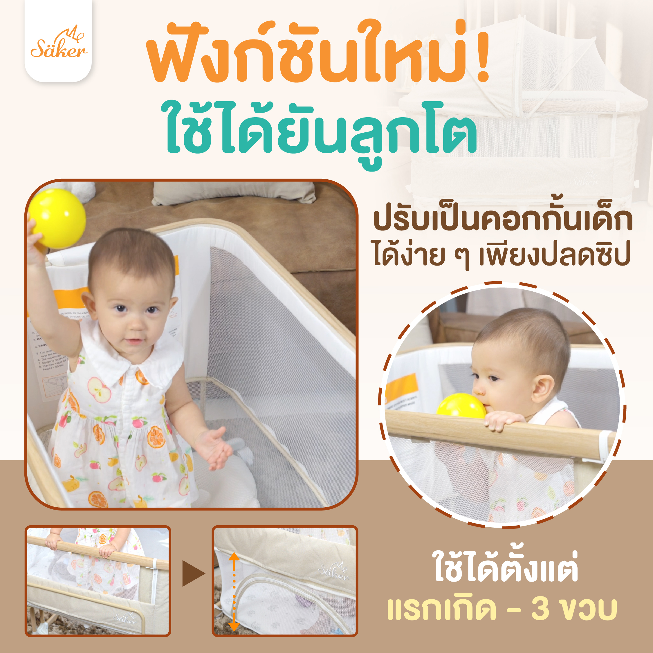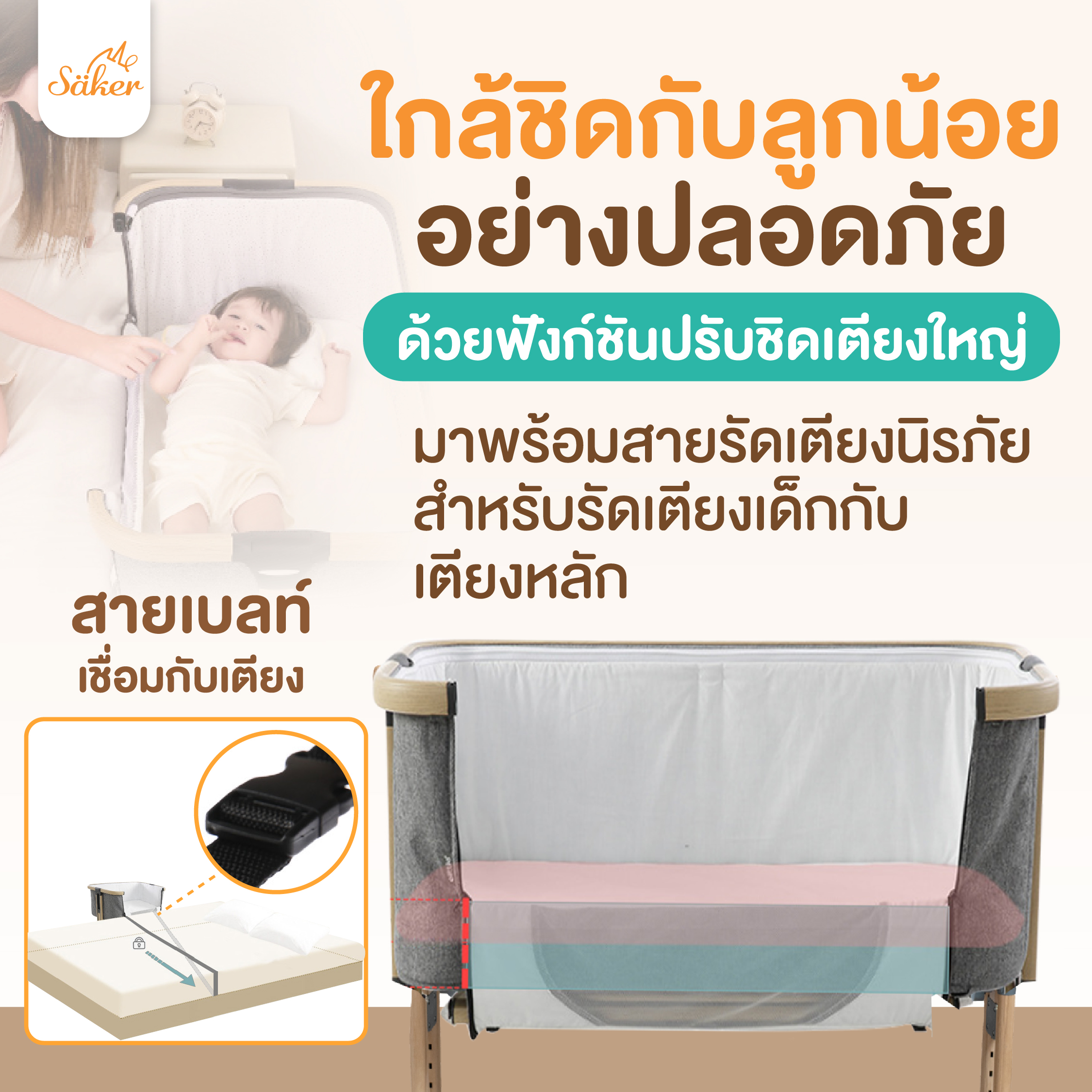 Säker เตียงเด็ก 4 in 1 ตอบโจทย์กว่าเดิม ปรับเป็น,ปรับชิดเตียงใหญ่ได้😍‼ เพิ่มความใกล้ชิดกับคุณพ่อคุณแม่ ด้วยฟังกชั่นปรับชิดเตียงใหญ่ ปรับระดับได้ตามต้องการ มาตรฐานความปลอดภัยระดับสูงจากยุโรป