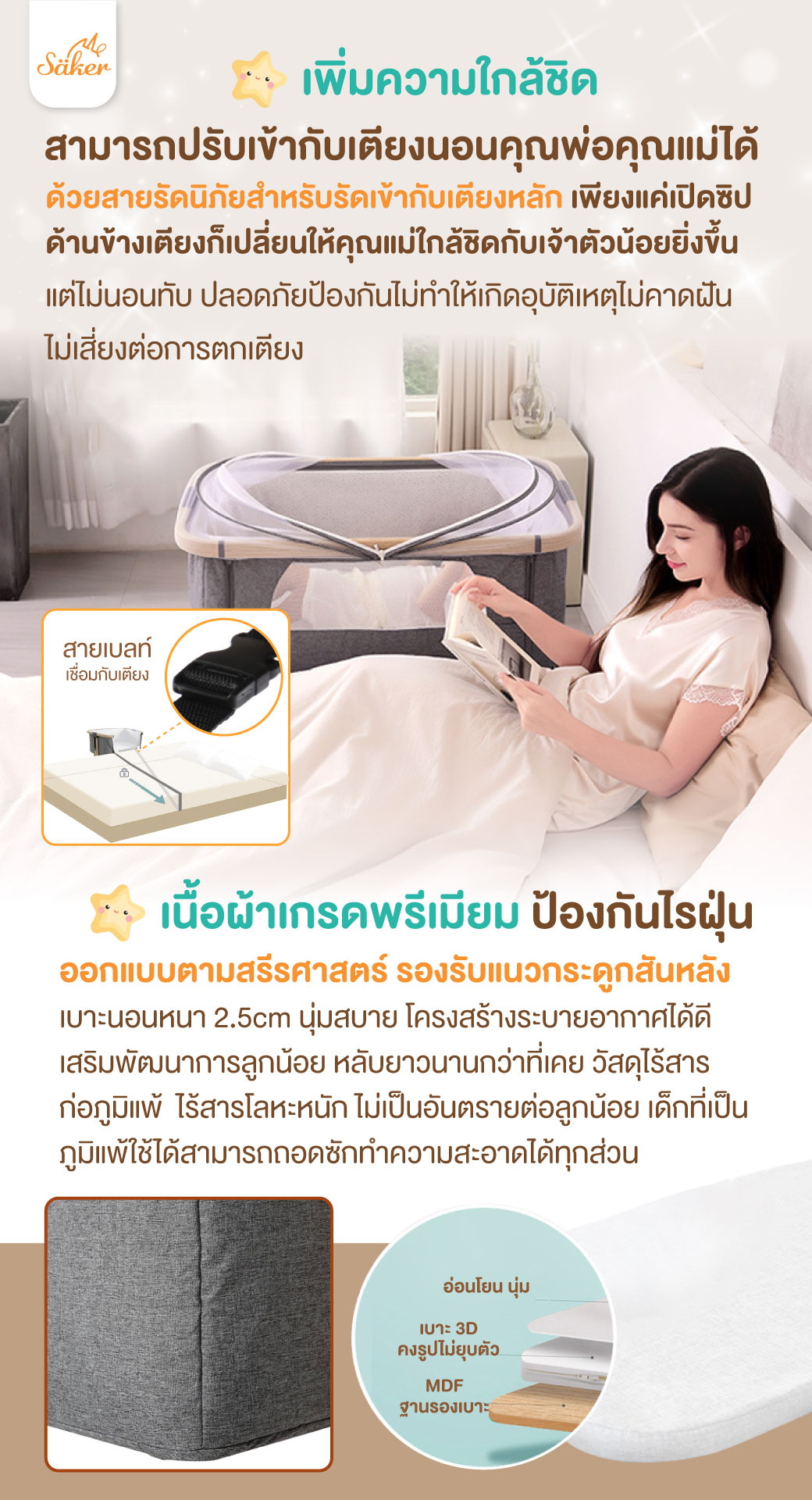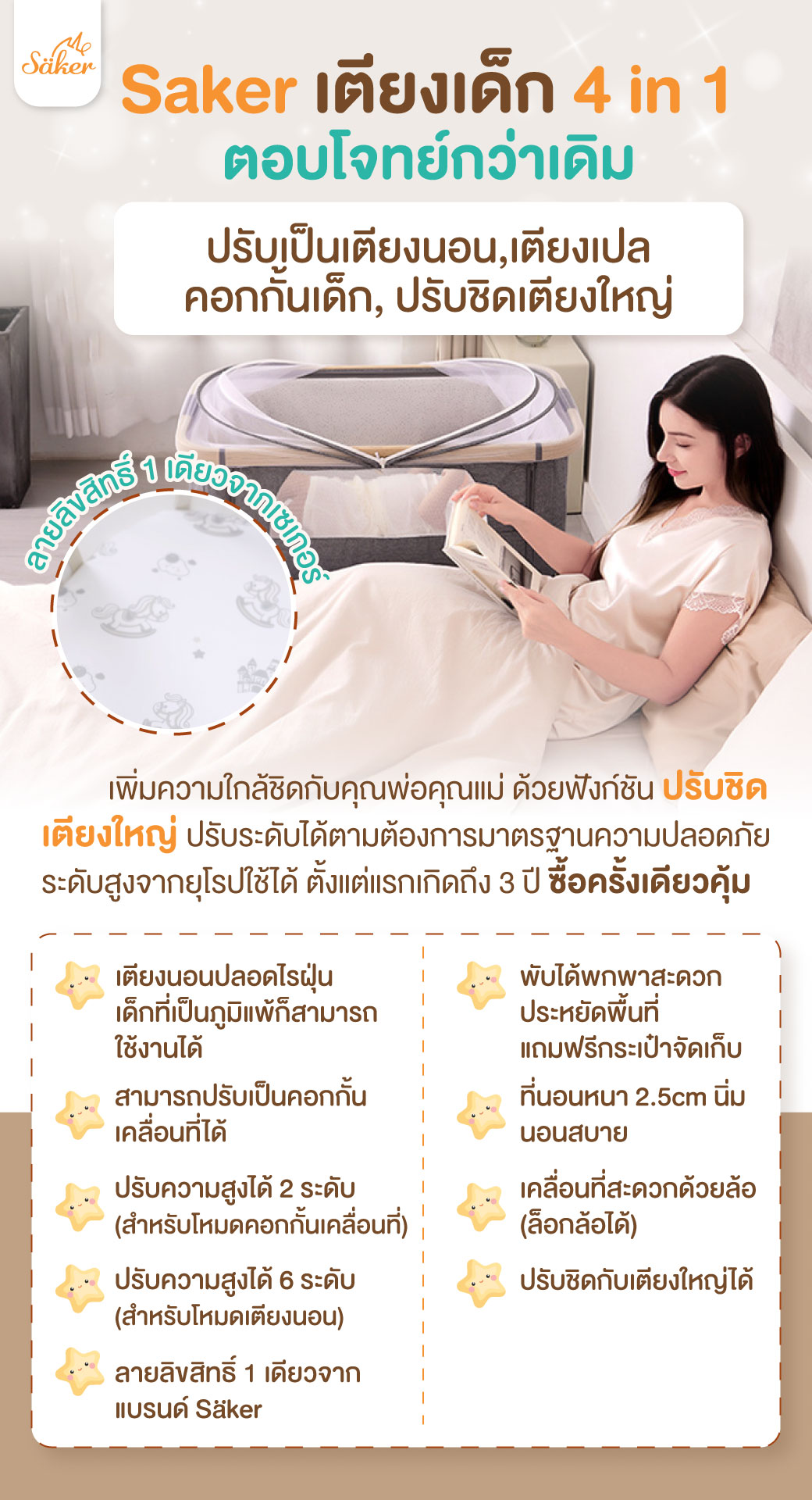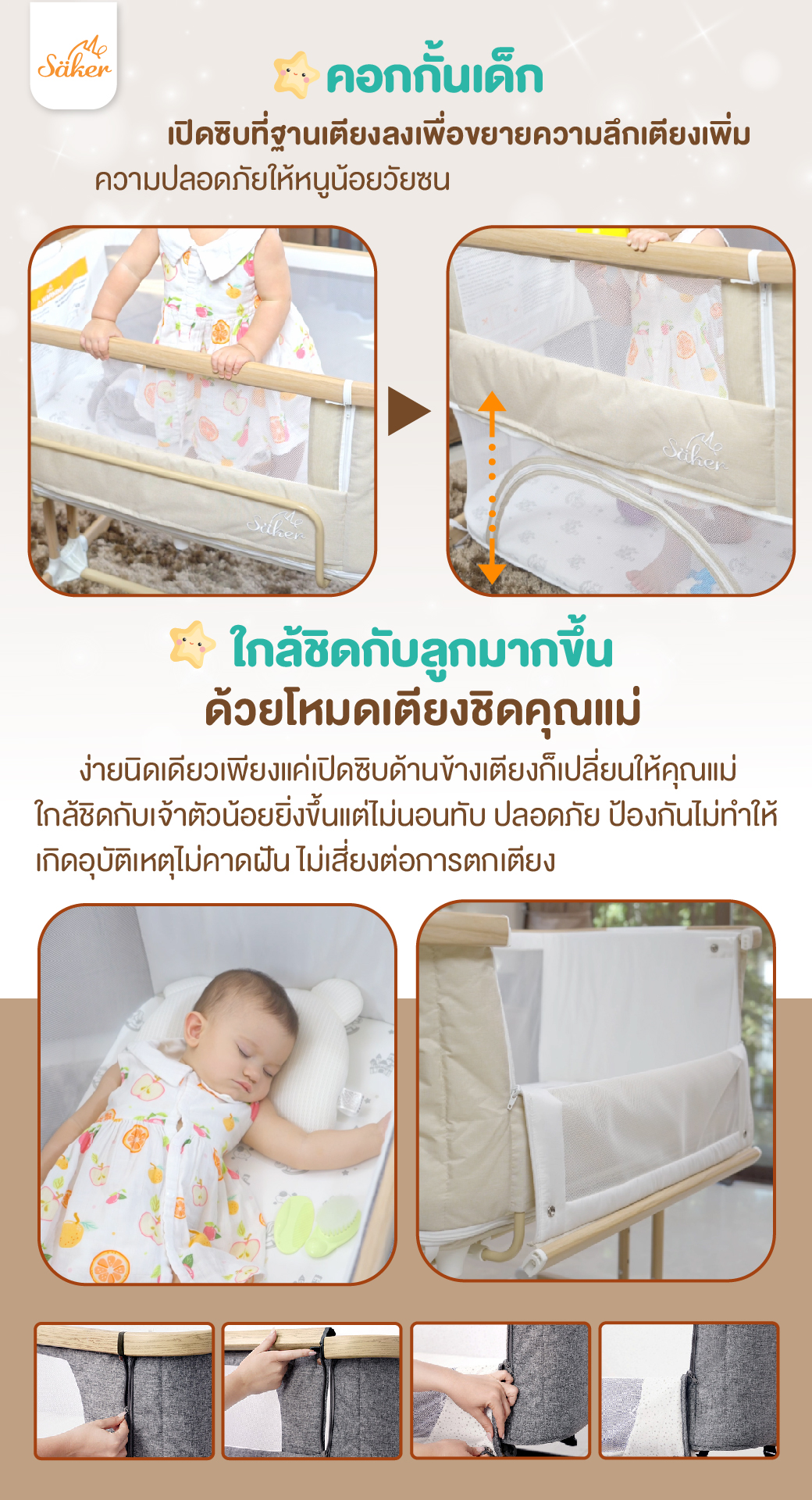 Säker เตียงเด็ก 4 in 1 ตอบโจทย์กว่าเดิม ปรับเป็น,ปรับชิดเตียงใหญ่ได้😍‼ เพิ่มความใกล้ชิดกับคุณพ่อคุณแม่ ด้วยฟังกชั่นปรับชิดเตียงใหญ่ ปรับระดับได้ตามต้องการ มาตรฐานความปลอดภัยระดับสูงจากยุโรป