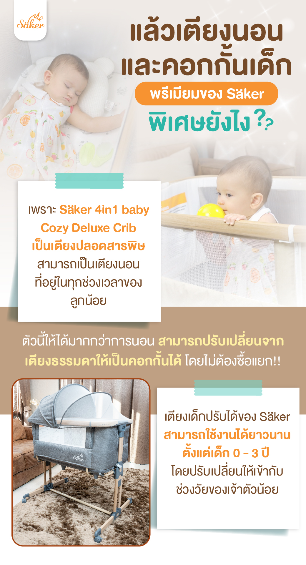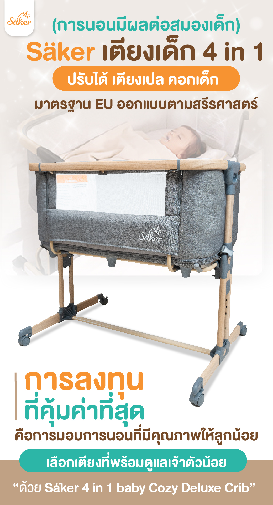 🌟การลงทุนที่คุ้มค่าที่สุด คือการมอบการนอนที่มีคุณภาพให้ลูกน้อย เลือกเตียงที่พร้อมดูแลเจ้าตัวน้อย ด้วย ”Säker 4 in 1 baby Cozy Deluxe Crib”👶🏻💤