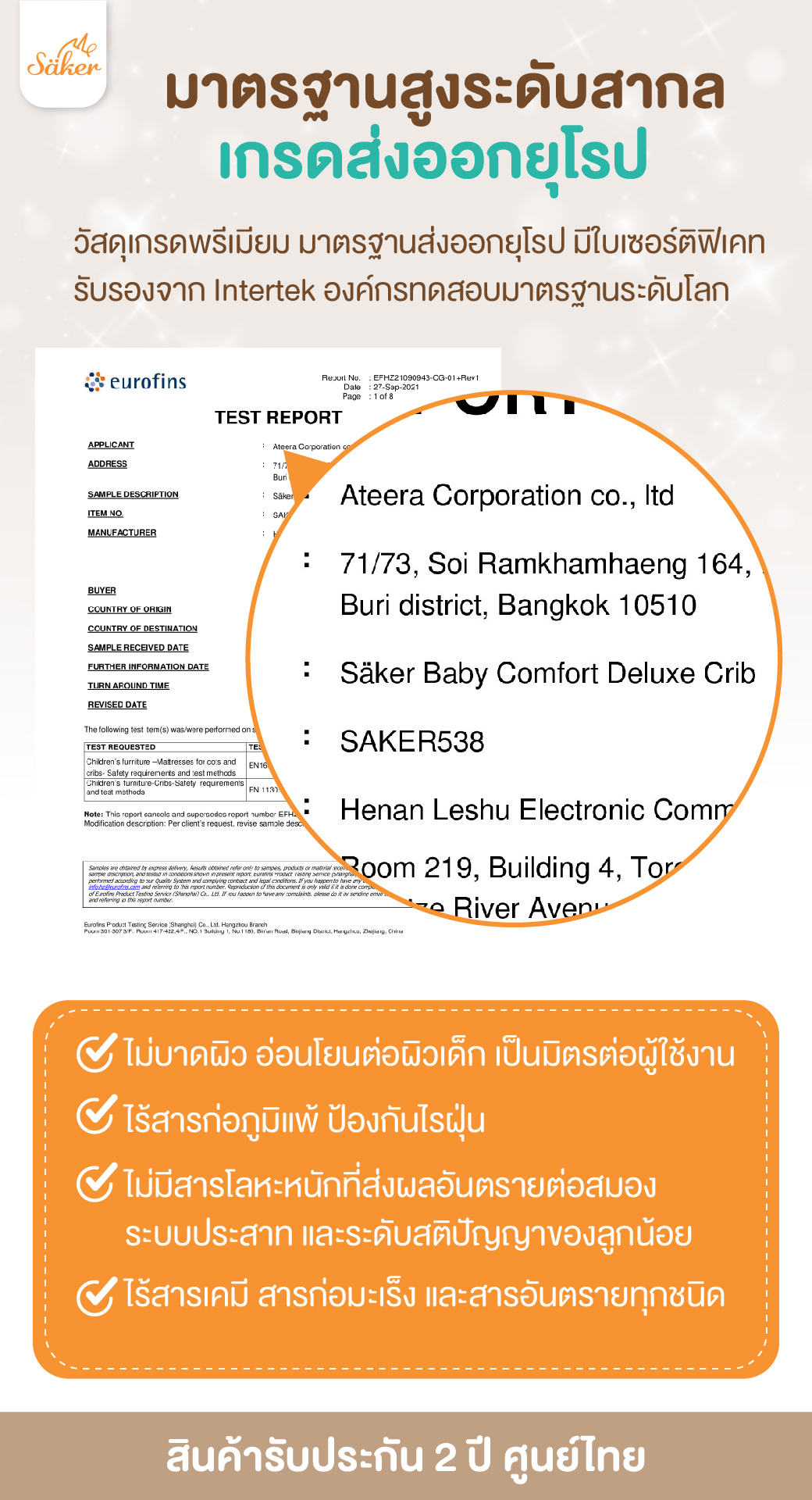 📍เหตุผลที่ต้องเลือกแบรนด์ Säker เพราะมีใบเซอร์ติฟิเคทรับรองจาก Intertek องค์กรทดสอบมาตรฐานระดับโลก🌏 ว่าปลอดภัยไร้สารพิษอย่างแท้จริง แบรนด์ที่ตรงไปตรงมา ตรวจสอบได้ บริษัทมีที่อยู่เป็นหลักแหล่ง มีบริการหลังการขายตลอด365วัน📞 สินค้ามีประกันศูนย์ไทย2ปี และ เป็นแบรนด์ที่อยู่คู่กับคนไทยมากว่า10ปี🇹🇭✨