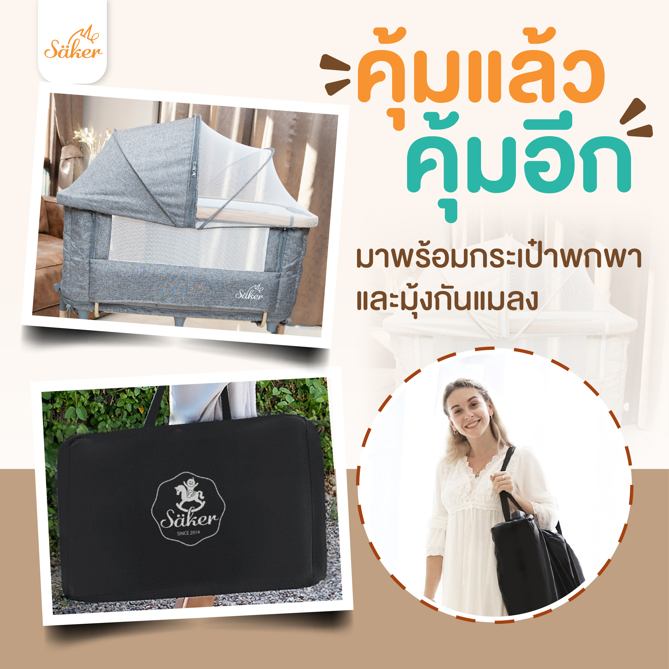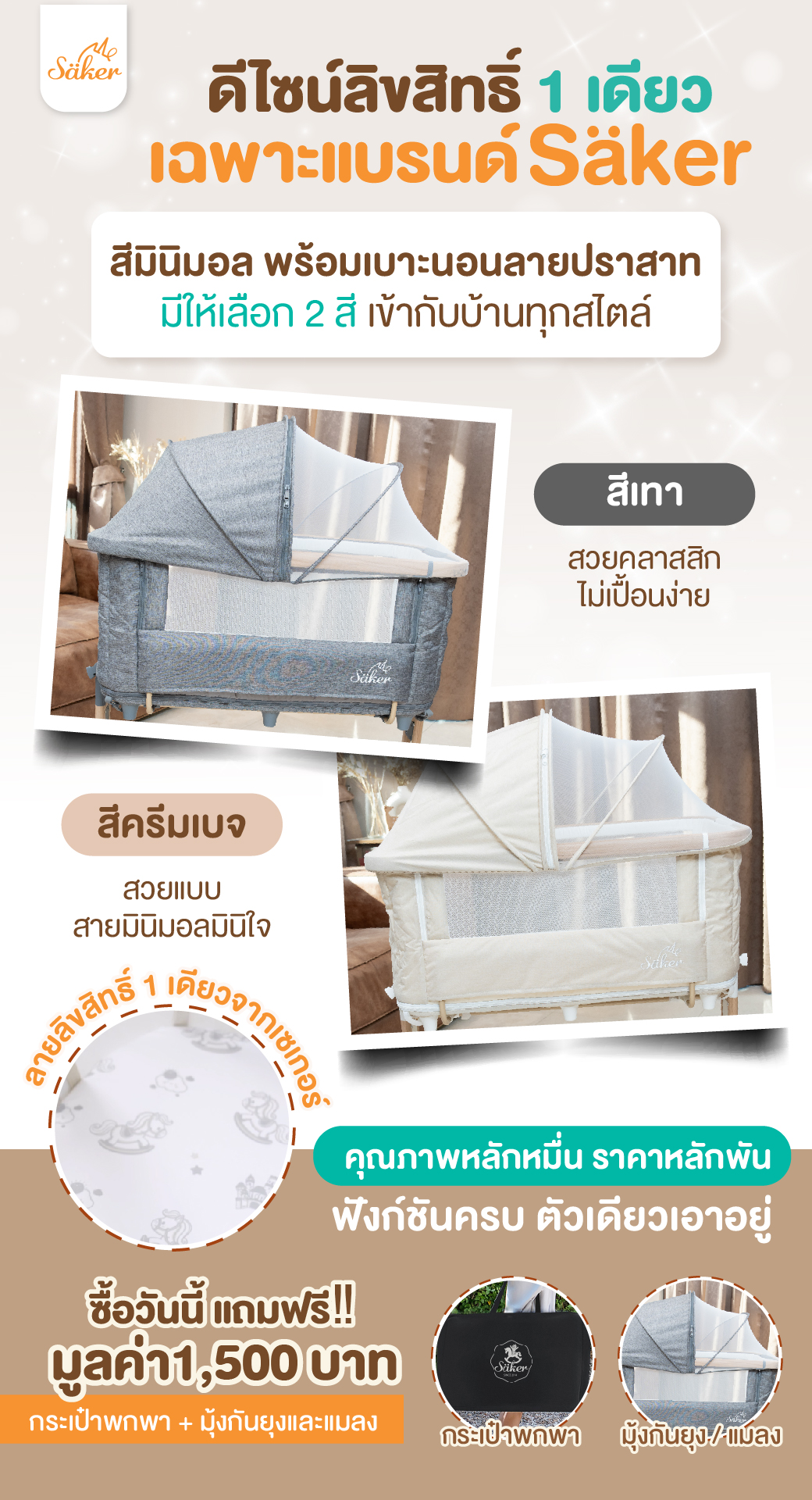 🏆ดีไซน์ลิขสิทธิ์ 1 เดียวเฉพาะแบรนด์ Säker🧡 สีมินิมอล พร้อมเบาะนอนลายปราสาท มีให้เลือก 2 สี เข้ากับบ้านทุกสไตล์ 1.สีเทา สวยคลาสสิก ไม่เปื้อนง่าย 2.สีครีมเบจ สวยแบบสายมินิมอลมินิใจ คุณภาพหลักหมื่น ราคาหลักพัน ฟังก์ชันครบ ตัวเดียวเอาอยู่ ซื้อวันนี้ แถมฟรี‼ กระเป๋าพกพา + มุ้งกันยุงและแมลง มูลค่า1,500฿ 🎁🎉