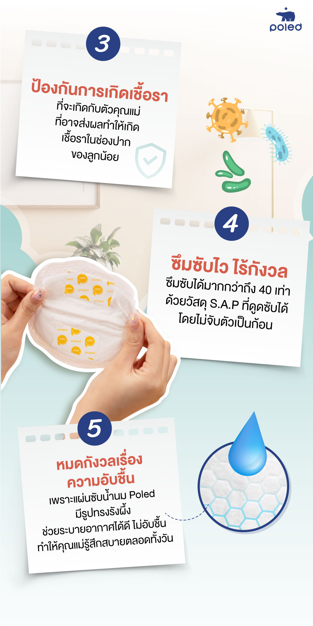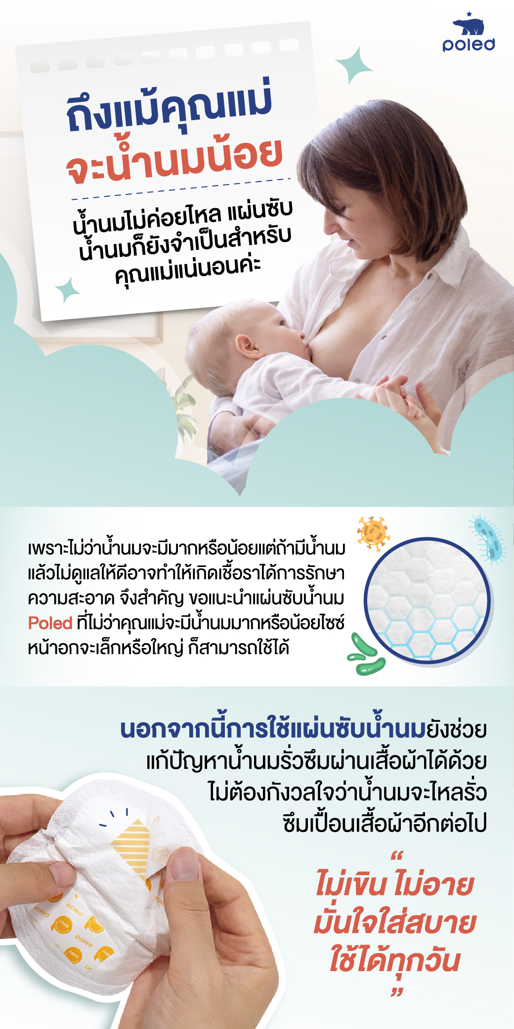 วิธีใช้งานแผ่นซับน้ำนม POLED