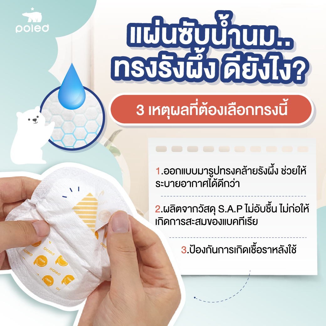 รูปทรงรังผึ้ง ช่วยซึมซับน้ำนมและระบายอากาศได้ดี ทำให้คุณแม่รู้สึกสบายตัวตลอดทั้งวัน