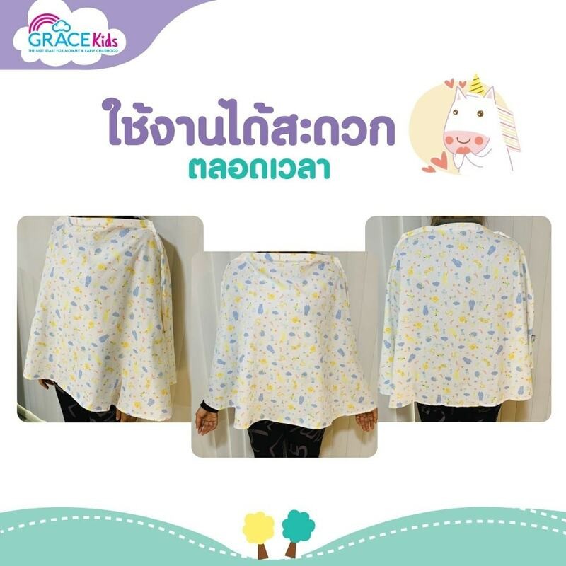ผ้าคลุมให้นม Grace Kids ทอจากผ้าฝ้าย 100% ของใช้สำคัญสำหรับคุณแม่เวลาปั้มนมนอกบ้าน ที่ทำงาน หรือให้นมลูกน้อย คุณสมบัติ