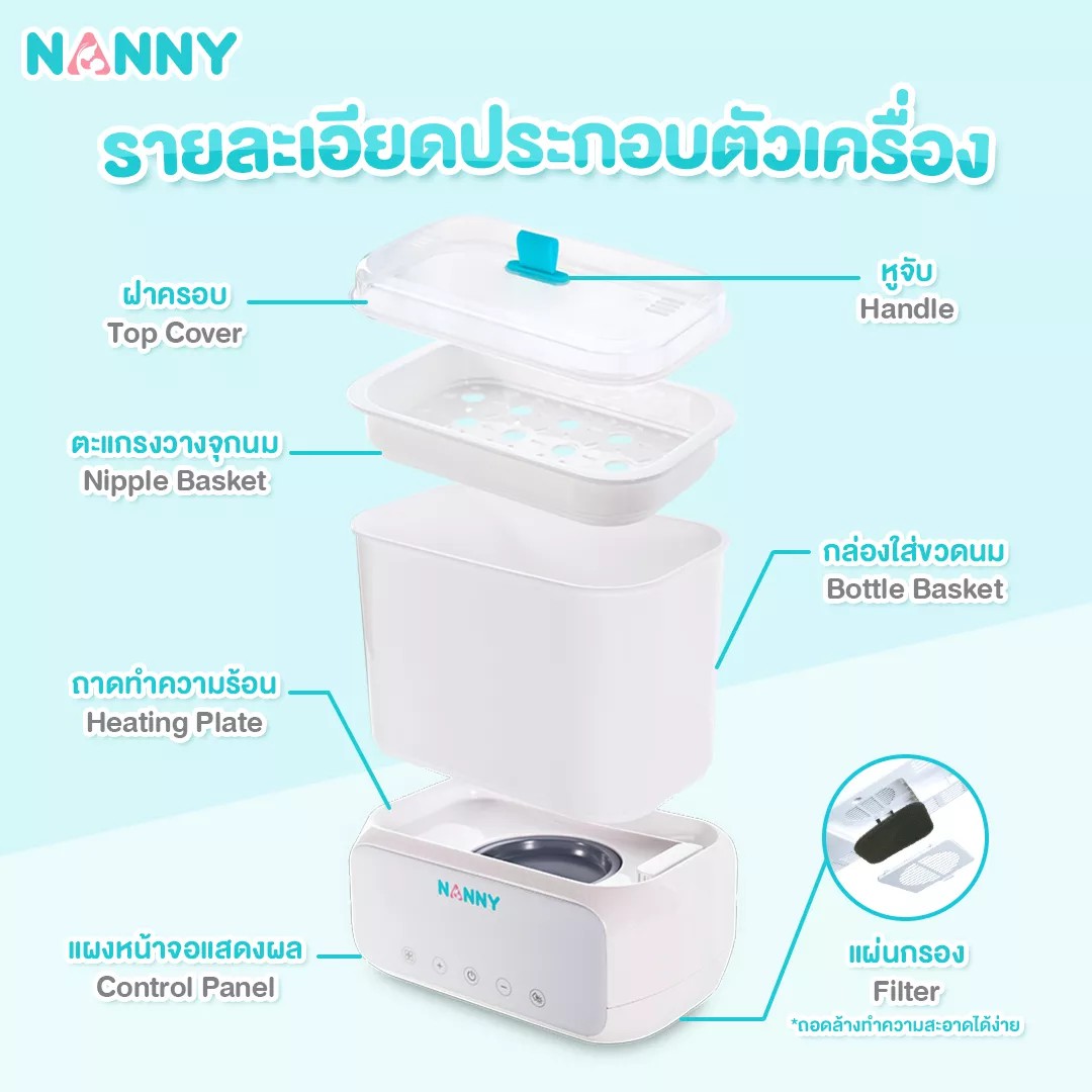 จุได้ 8 ขวด รับประกัน 1 ปี ดีไซด์มินิมอล ทรงสี่เหลื่ยมผืนผ้าเก็บเหลี่ยมมุม ช่วยประหยัดพื้นที่จัดวาง ชิ้นส่วนไม่เยอะประกอบใช้งานง่าย ทำความสะอาดง่าย ผลิตจากวัสดุอย่างดีปราศจากสารบีพีเอ (BPA Free) นึ่งฆ่าเชื้อได้ครั้งละ 8 ขวด ภายใน 10 นาที สามารถฆ่าเชื้อได้ถึง 99.9% ลดการเจริญเติบโตของแบคทีเรีย ทำให้มั่นใจได้ว่าอุปกรณ์สำหรับทารกจะสะอาดหมดจด และดีต่อสุขภาพอนามัยซึ่งช่วยให้คุณแม่มั่นใจในการดูแลลูกน้อยได้มากขึ้น