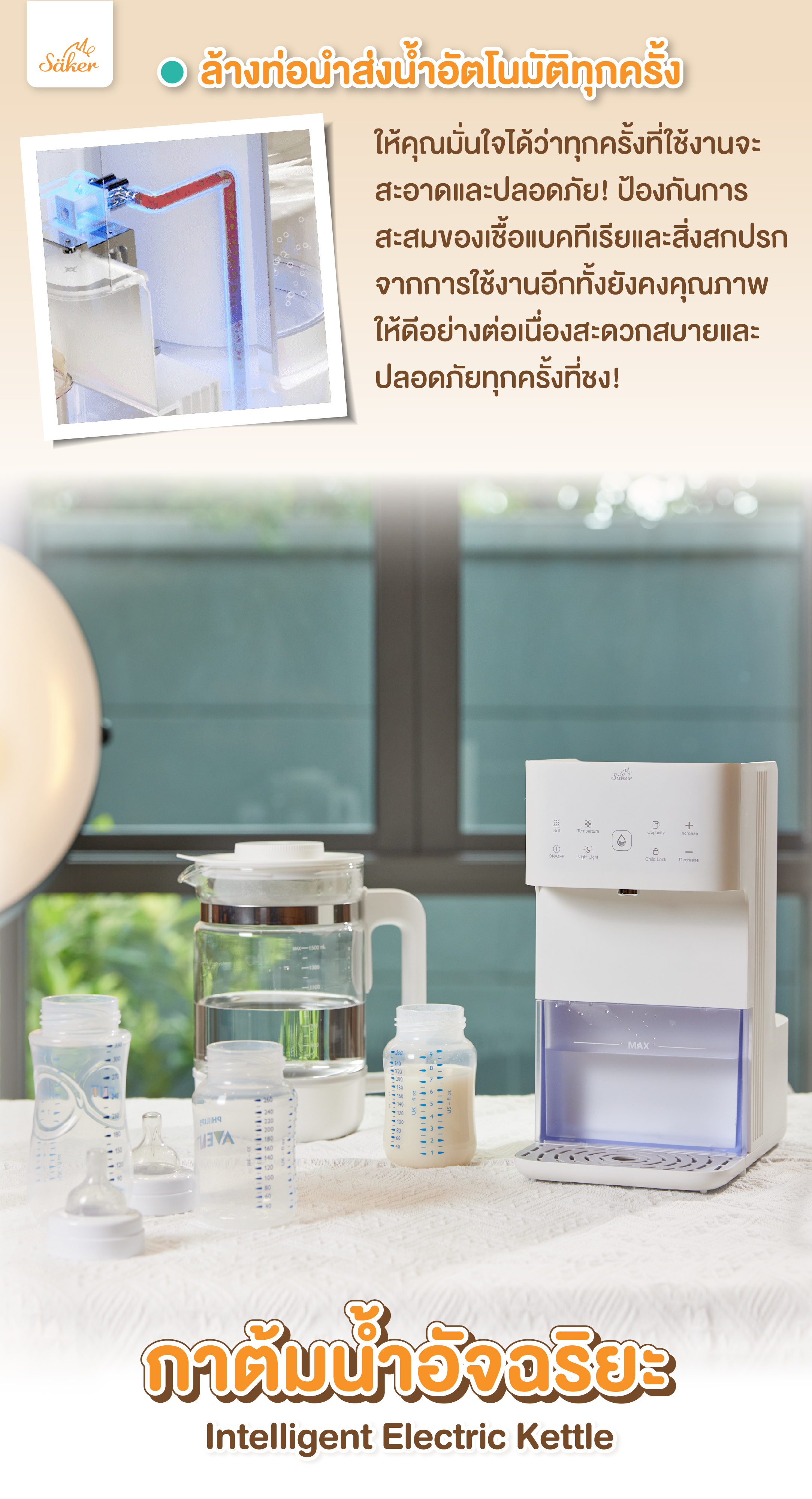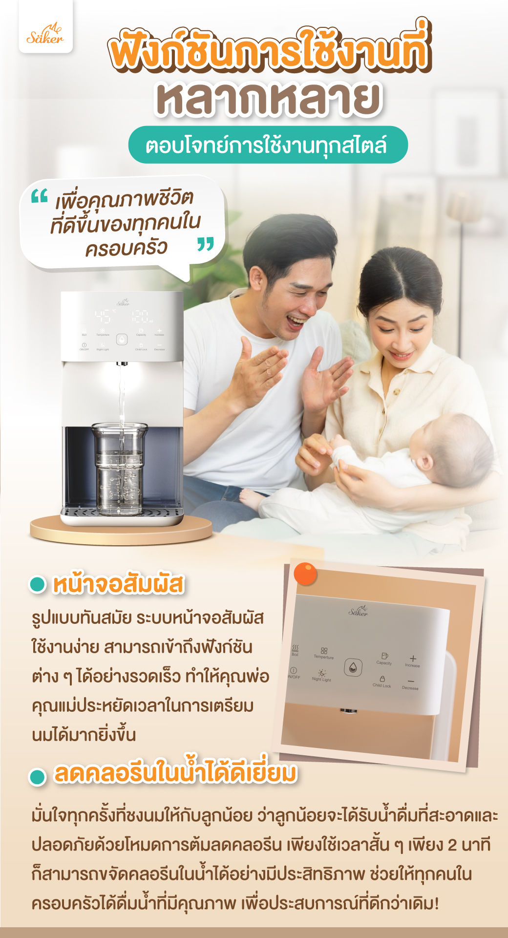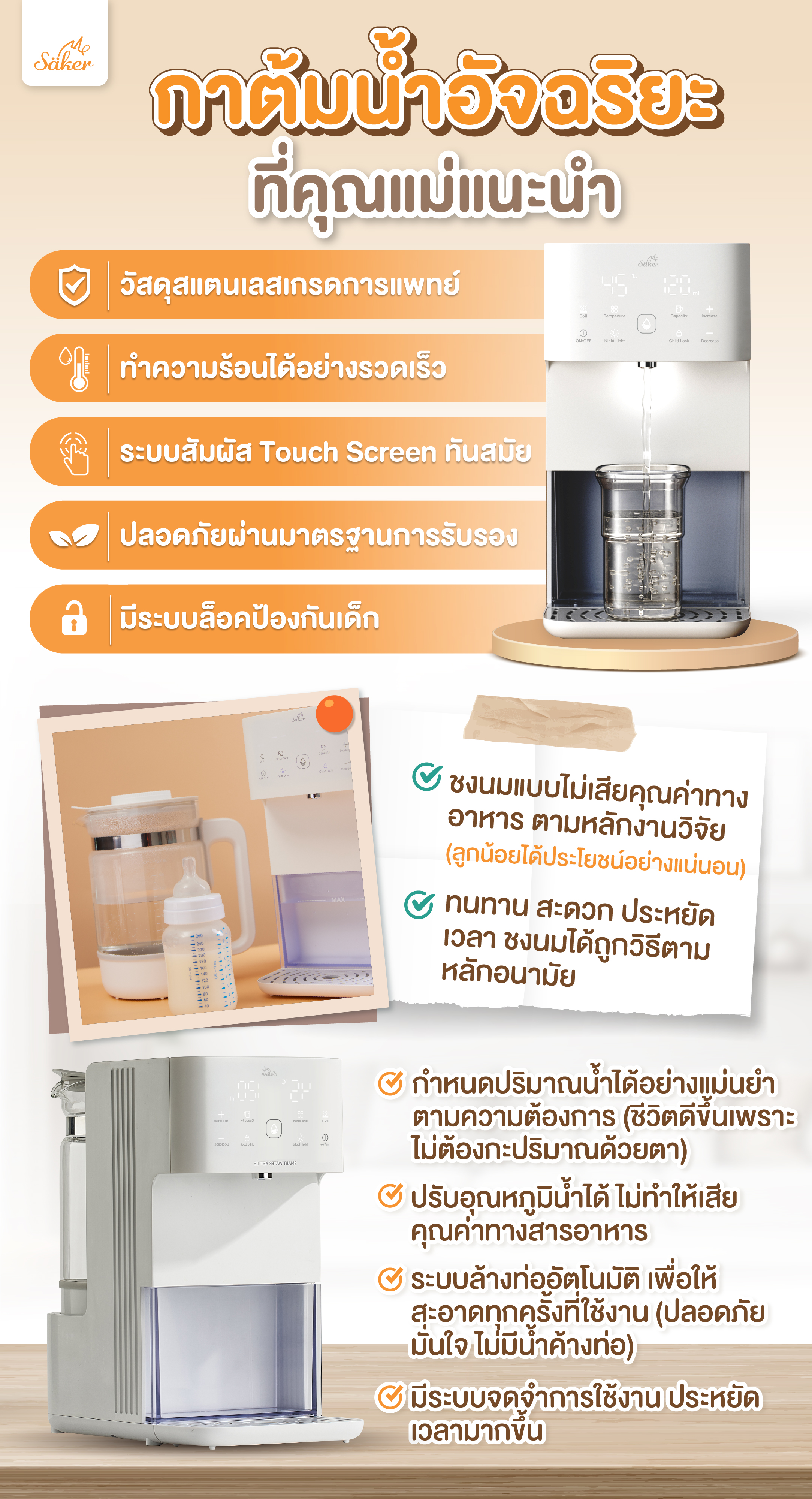 ตัวช่วยสำหรับคุณพ่อคุณแม่ในการลดระยะเวลาในการเตรียมนมให้กับลูกน้อย ด้วยอุณหภูมิของน้ำที่คงที่ ไม่ต้องคอยมานั่งเสียบปลั๊กต้มใหม่ให้เสียเวลา ตัดขั้นตอน ป้อนนมให้กับลูกน้อยได้ทันใจ มาพร้อมโหมดประหยัดพลังงานอัตโนมัติในตัว ไม่เปลืองไฟ ไร้กังวล