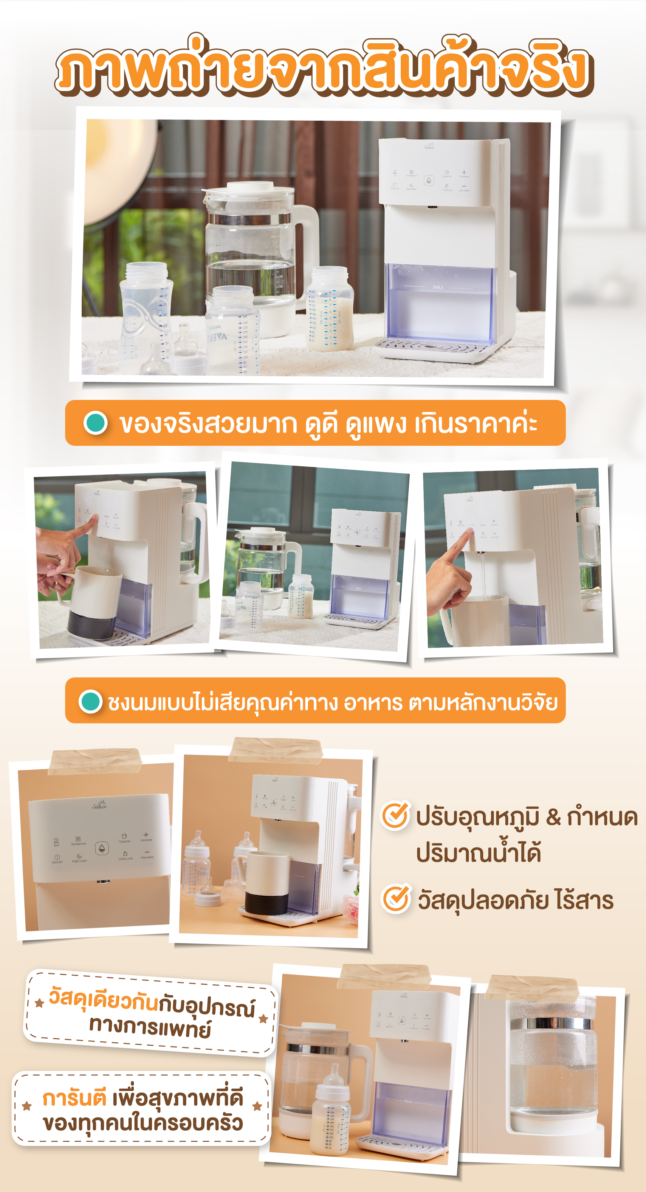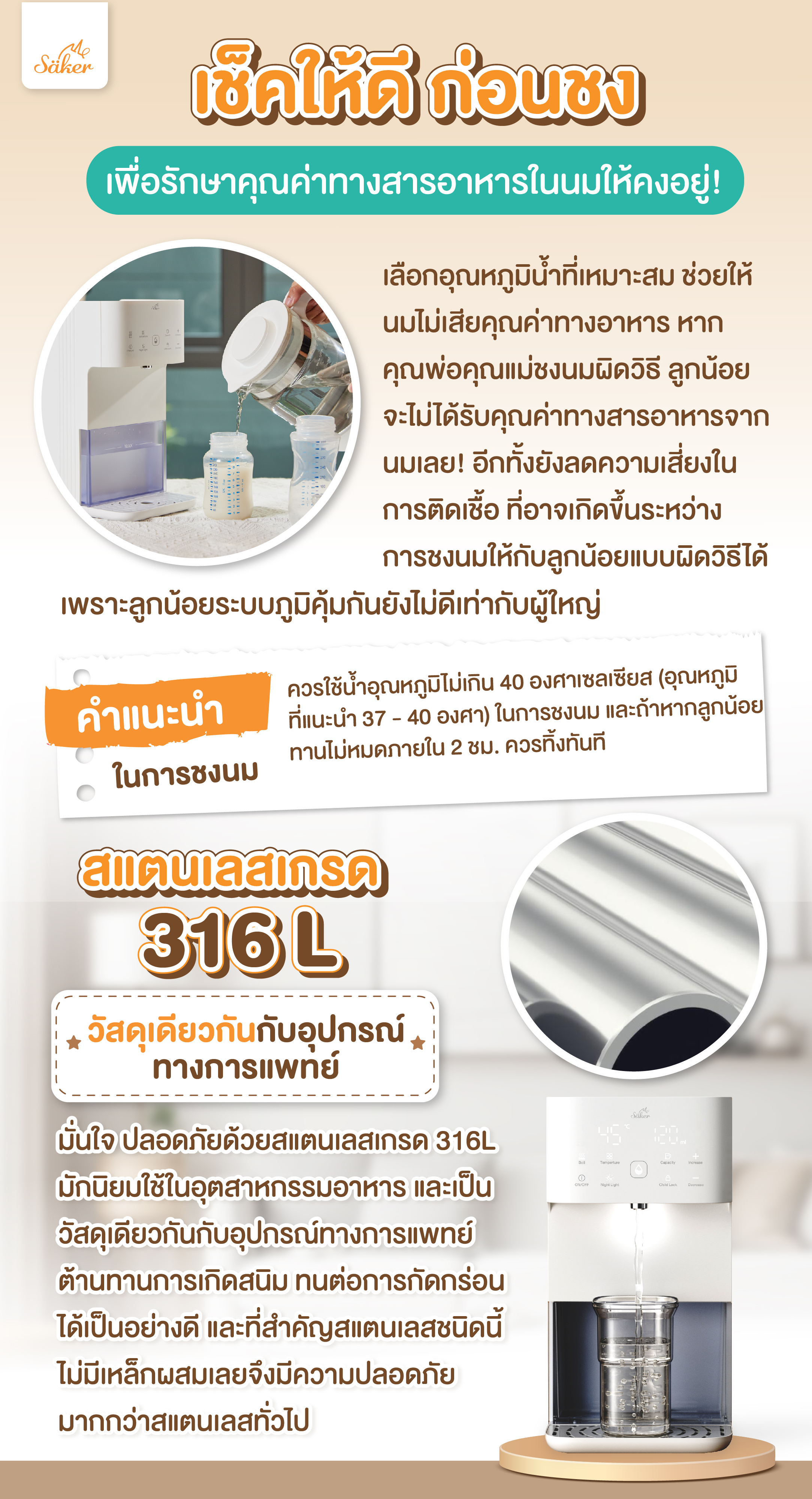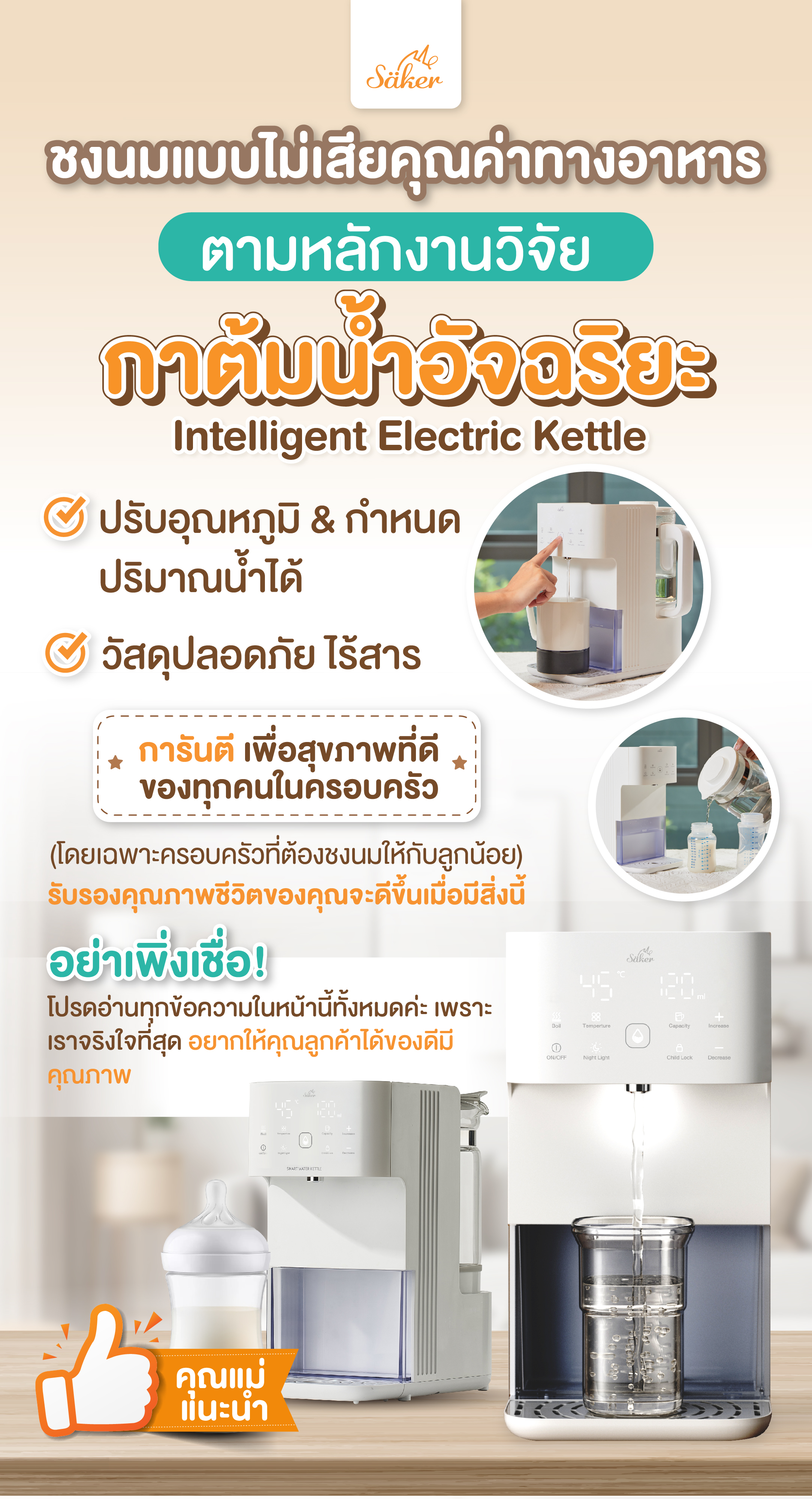 ด้วยระบบควบคุมอุณหภูมิที่แม่นยำ เลือกอุณหภูมิที่ต้องการได้ก่อนต้ม ลดเวลาในการรอ ได้อุณหภูมิและปริมาณที่เหมาะสมกับการชงนมได้ทันที ช่วยให้คุณพ่อคุณแม่ชงนมให้ลูกน้อยได้เร็วและง่ายยิ่งขึ้น! สะอาด ปลอดภัย มั่นใจ ลูกน้อยกินนมถูกหลักอนามัยแน่นอน ✨