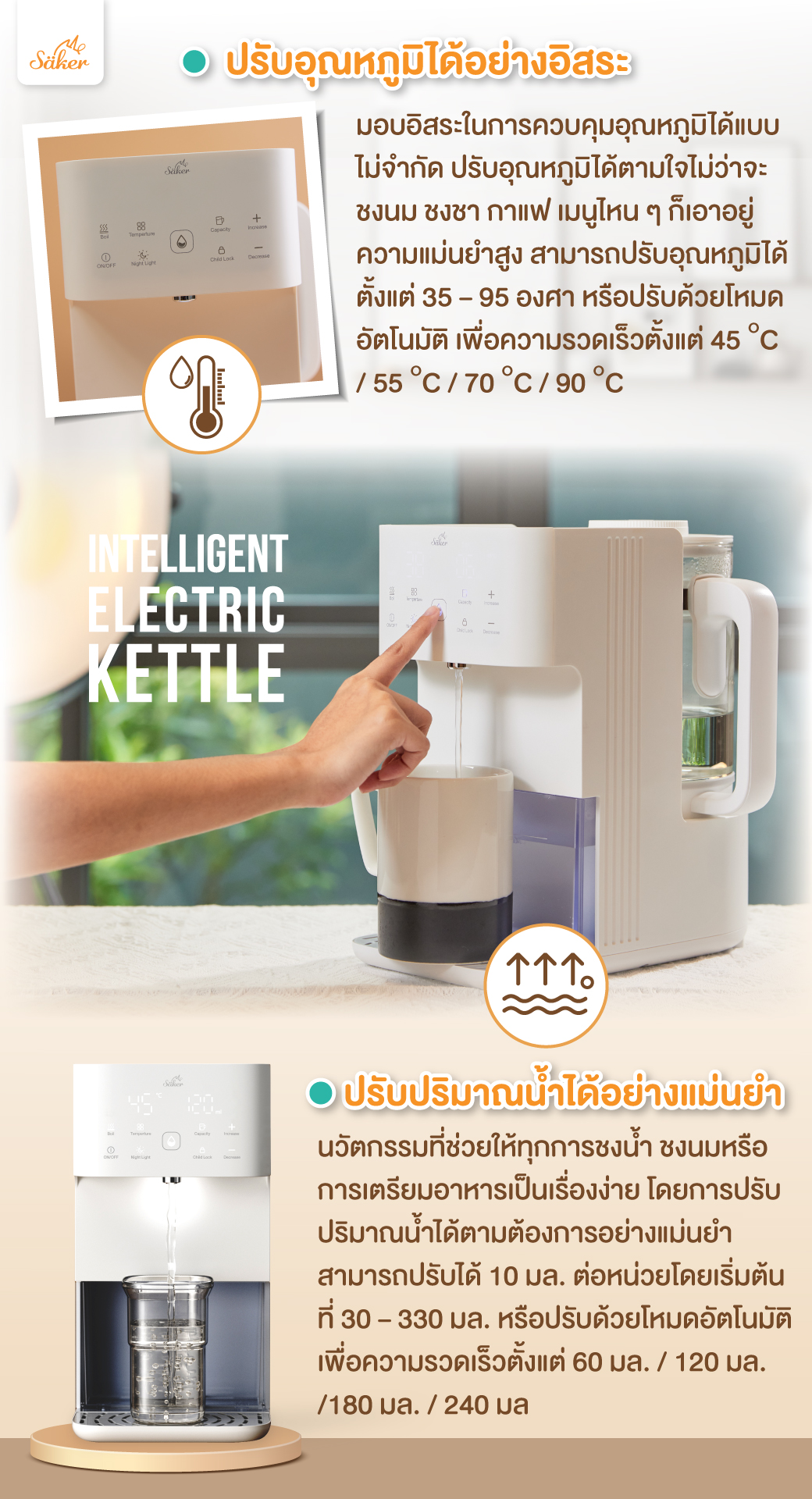 นวัตกรรมที่ช่วยให้ทุกการชงน้ำ ชงนม หรือการเตรียมอาหารเป็นเรื่องง่าย โดยการปรับปริมาณน้ำได้ตามต้องการอย่างแม่นยำ สามารถปรับได้ 10 มล. ต่อหน่วย โดยเริ่มต้นที่ 30 – 330 มล. หรือปรับด้วยโหมดอัตโนมัติ เพื่อความรวดเร็วตั้งแต่ 60 มล. / 120 มล. / 180 มล. / 240 มล.