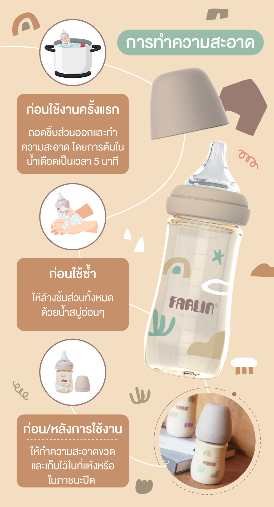 ⭕ ขวด PPSU สีชาของ Farlin คอกว้าง…ทำความสะอาดง่าย –ด้านในคอขวดเรียบเนียน ไม่มีเกลียวหมุนฝา สามารถทำความสะอาดได้อย่างหมดจด