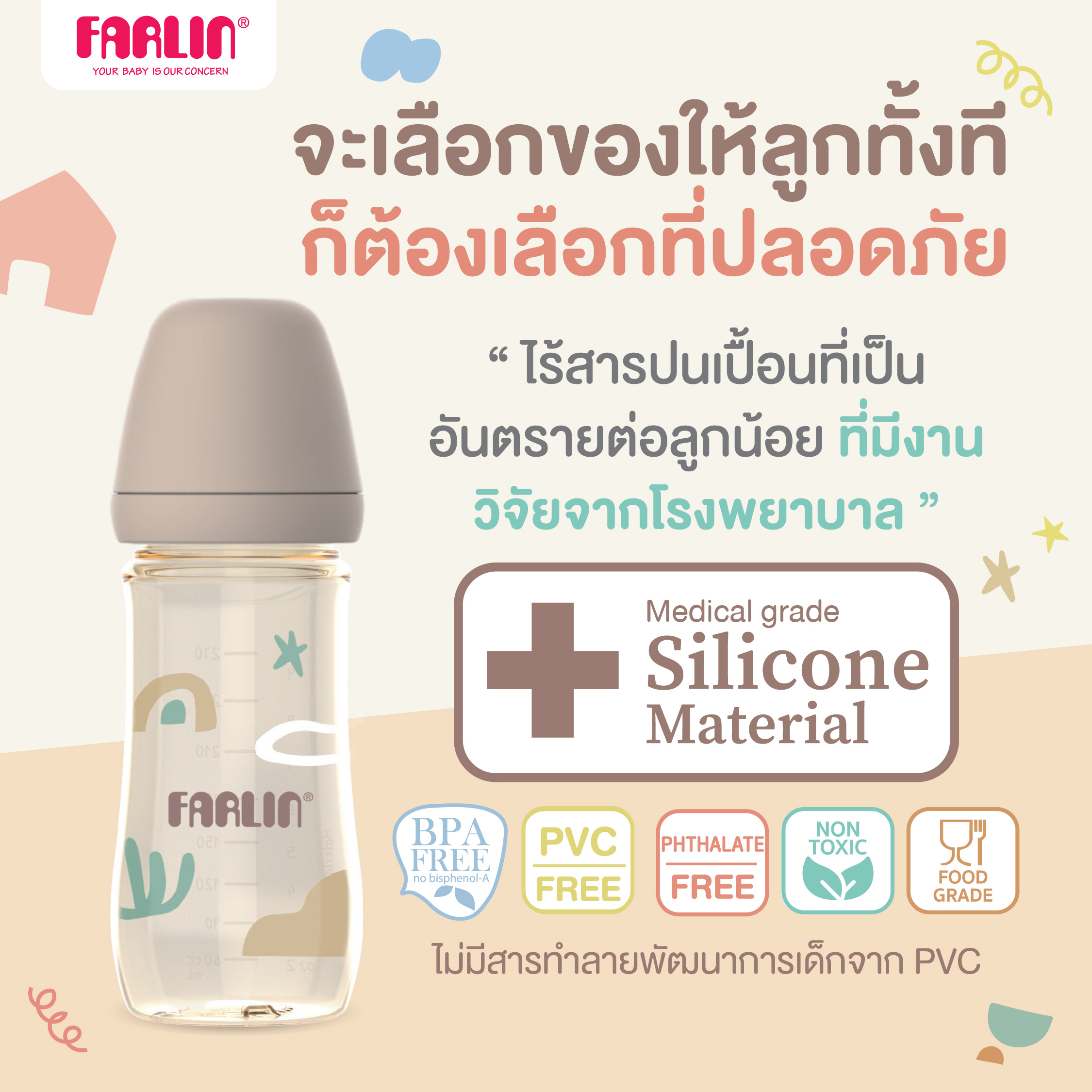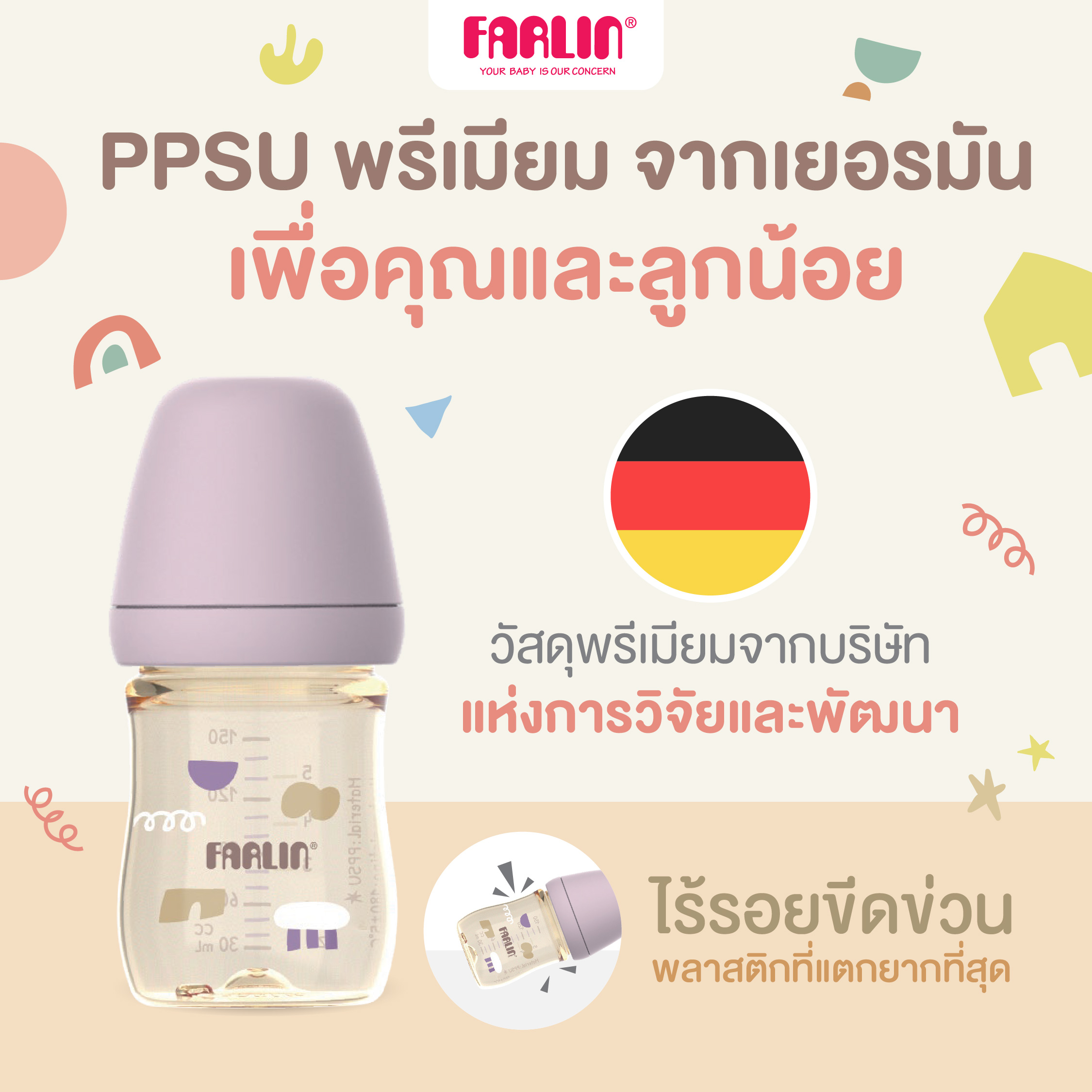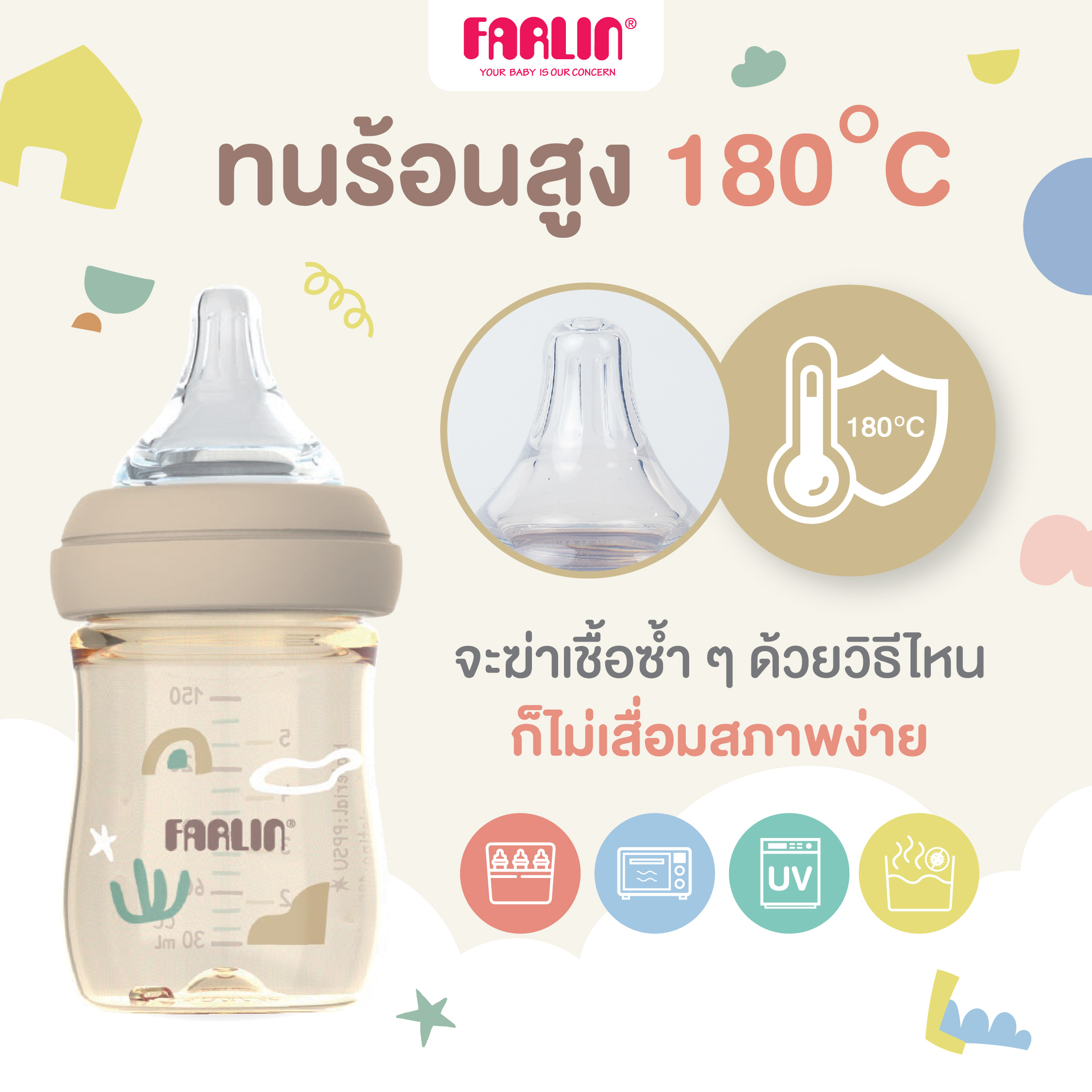 Farlin Wide Neck PPSU Feeding Bottle ขวดนมสีชา เลือกวัสดุที่วงการแพทย์และอวกาศใช้ ที่นำเข้าจากเยอรมัน มั่นใจแข็งแรง ทนทาน ปลอดภัย สำหรับลูกน้อย