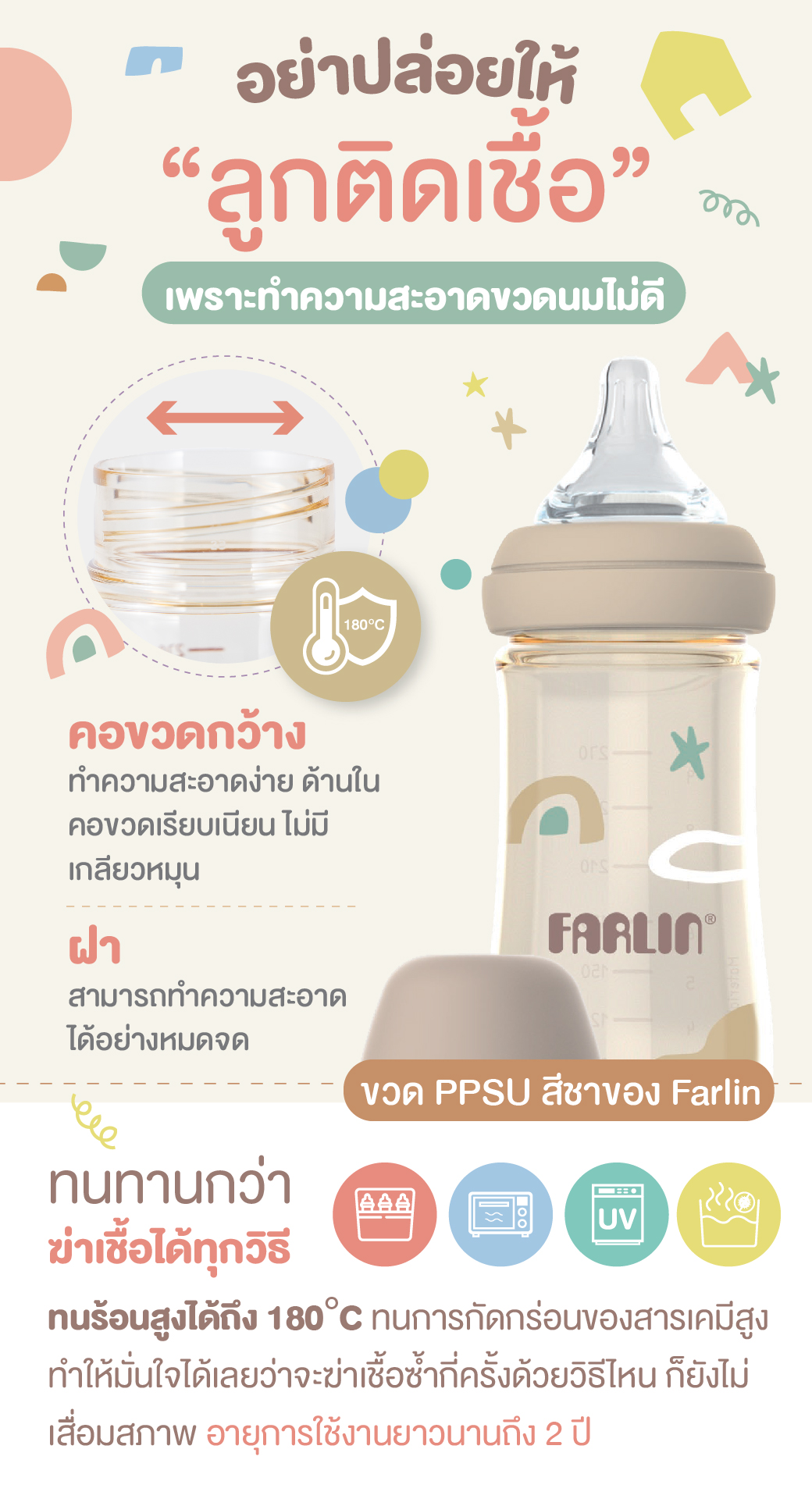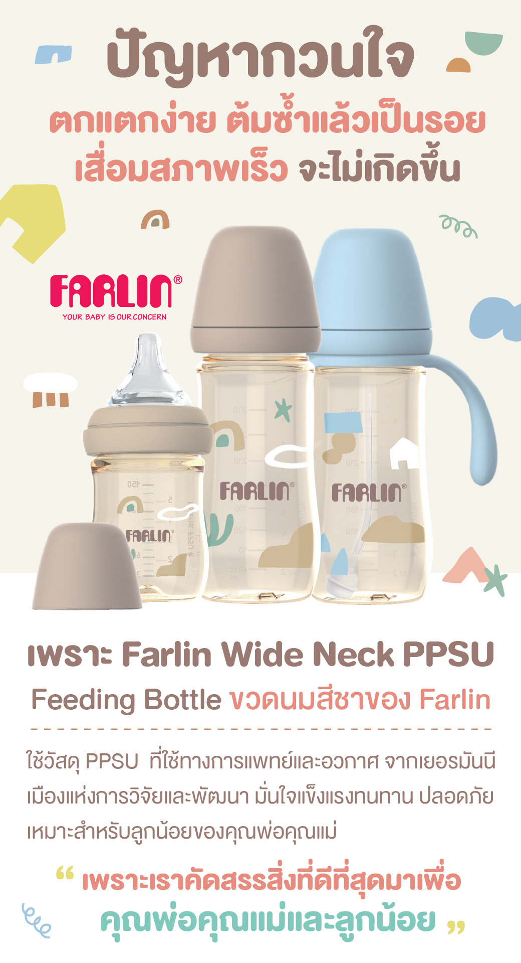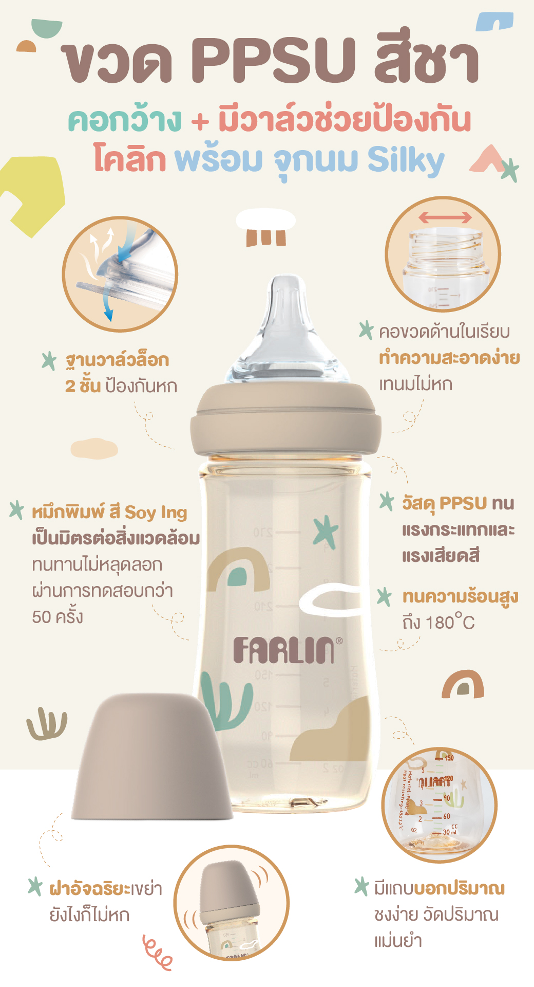 เพราะ Farlin Wide Neck PPSU Feeding Bottle ขวดนมสีชาของ Farlin