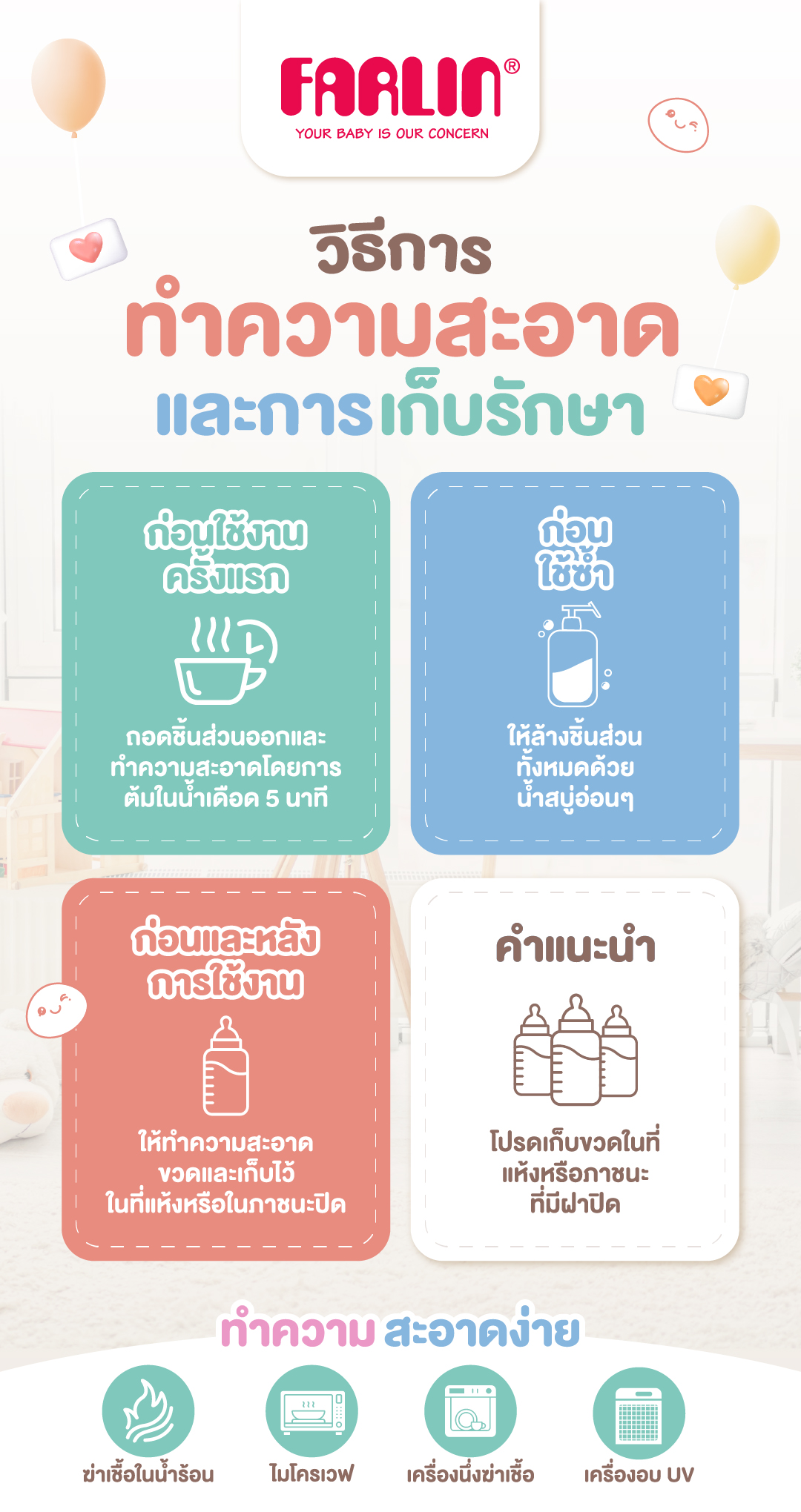 ✅ผลิตภัณฑ์ทุกชิ้นที่ผลิตได้รับคำแนะนำจากกุมารแพทย์ของโรงพยาบาล Farlin โดยตรง