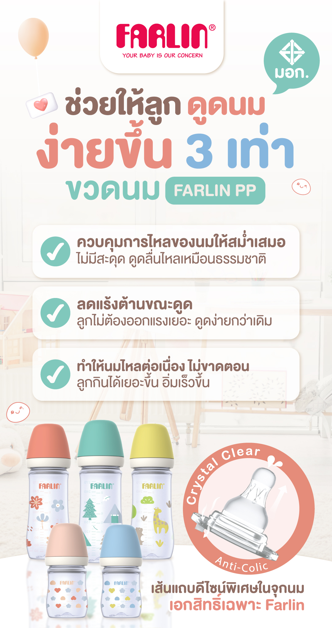 “ขวดนม Farlin มั่นใจ ปลอดภัย ลดอาการโคลิก ดีไซน์พิเศษเอกสิทธิ์เฉพาะ Farlin”