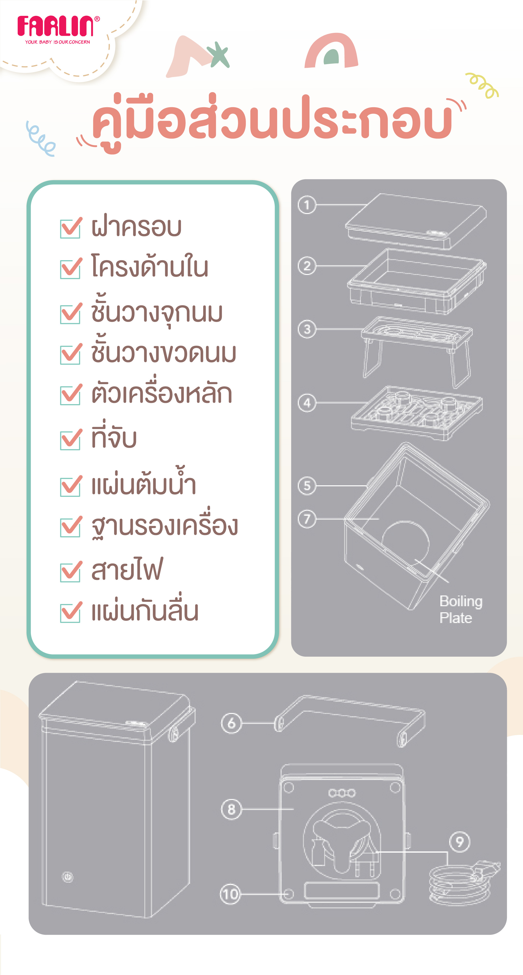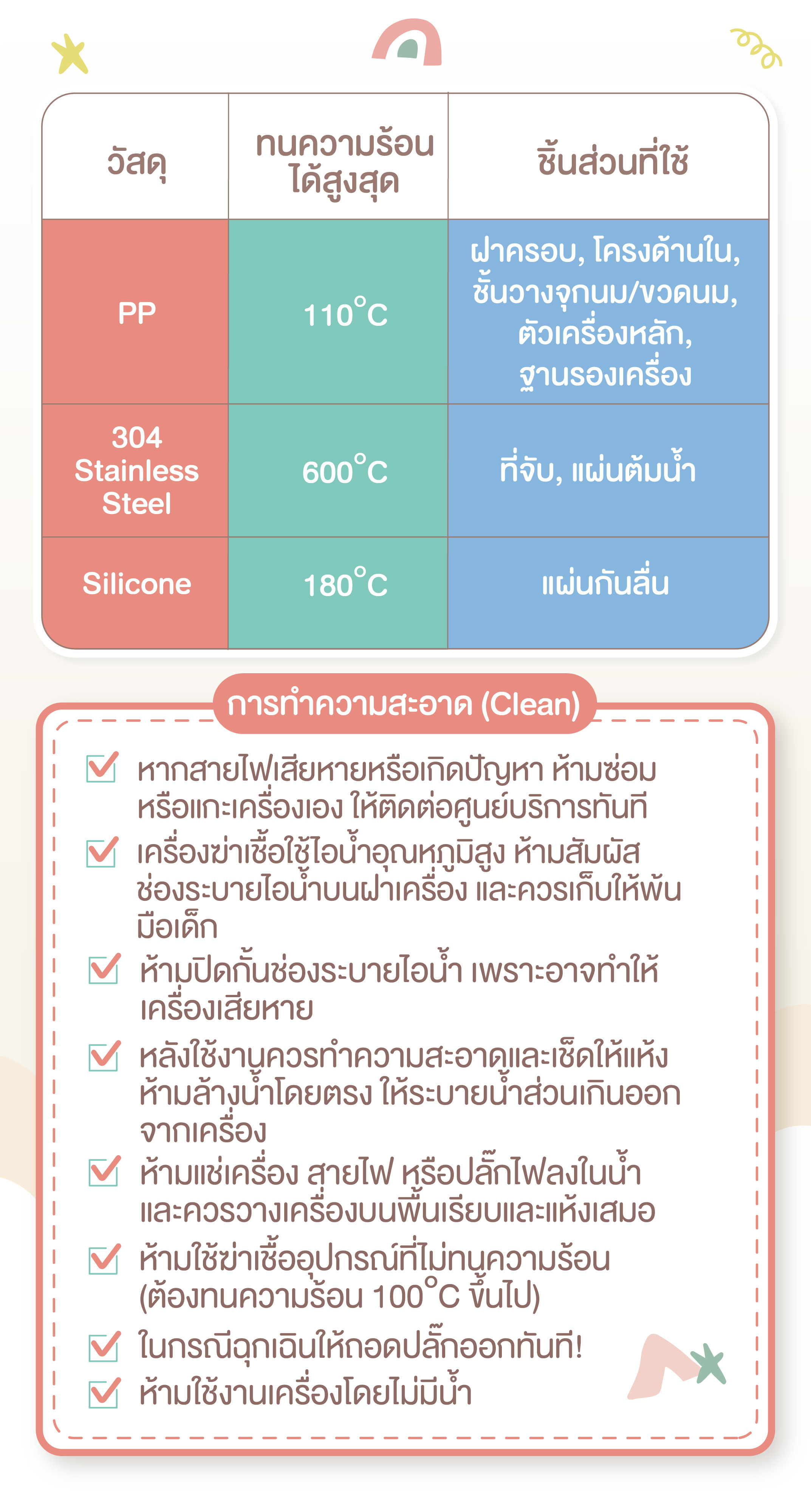 🔅สามารถใช้ฆ่าเชื้อขวดนม, แก้วหัดดื่ม, ช้อนส้อม, ของใช้เด็ก และจุกนม
