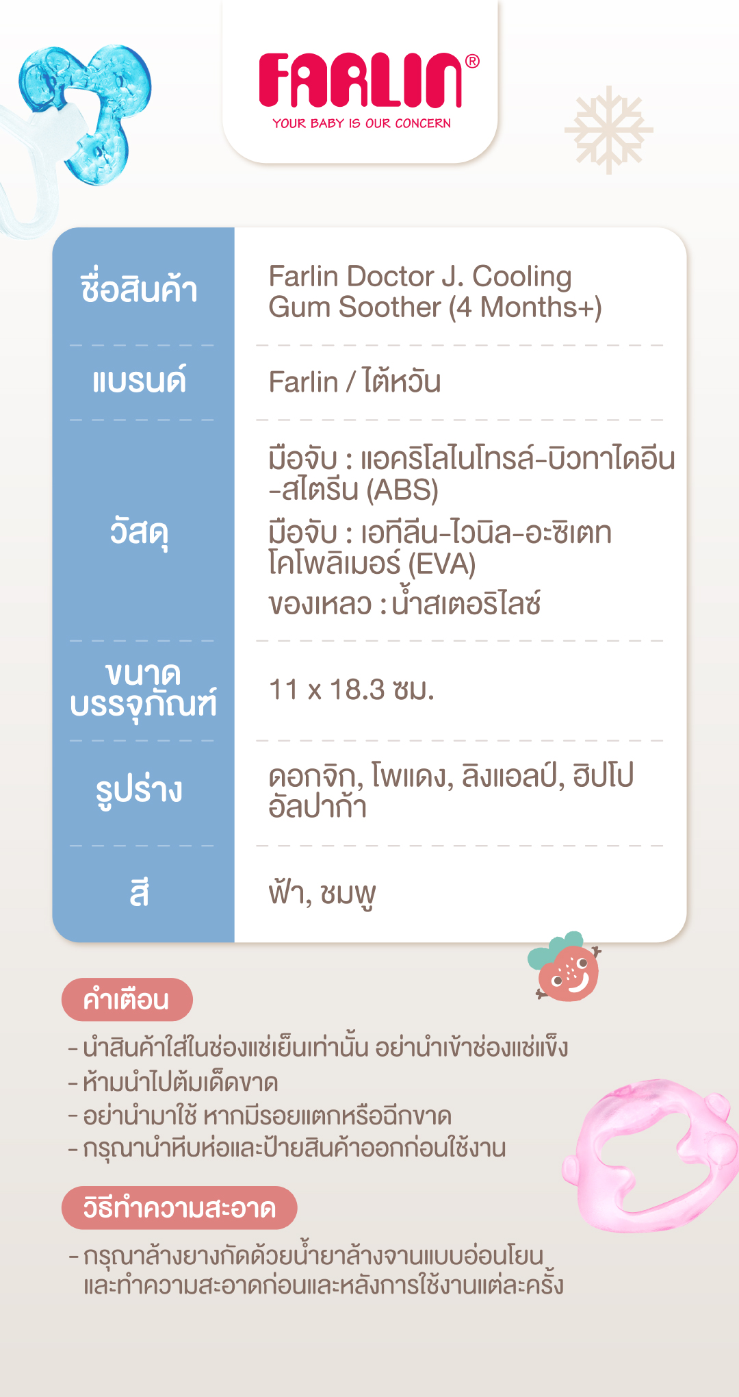 ชื่อสินค้า : Farlin Doctor J. Cooling Gum Soother (4 Months+)