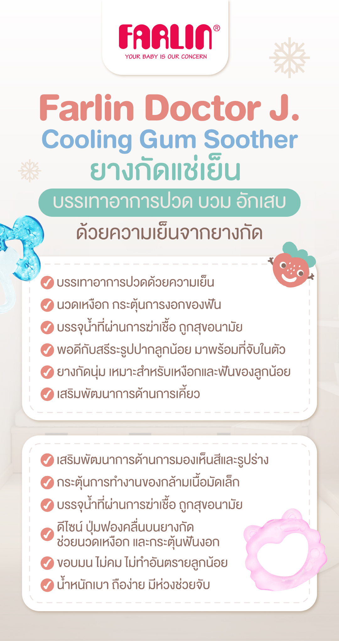 Farlin Doctor J. Cooling Gum Soother ยางกัดแช่เย็น บรรเทาอาการปวด บวม อักเสบ ด้วยความเย็นจากยางกัด