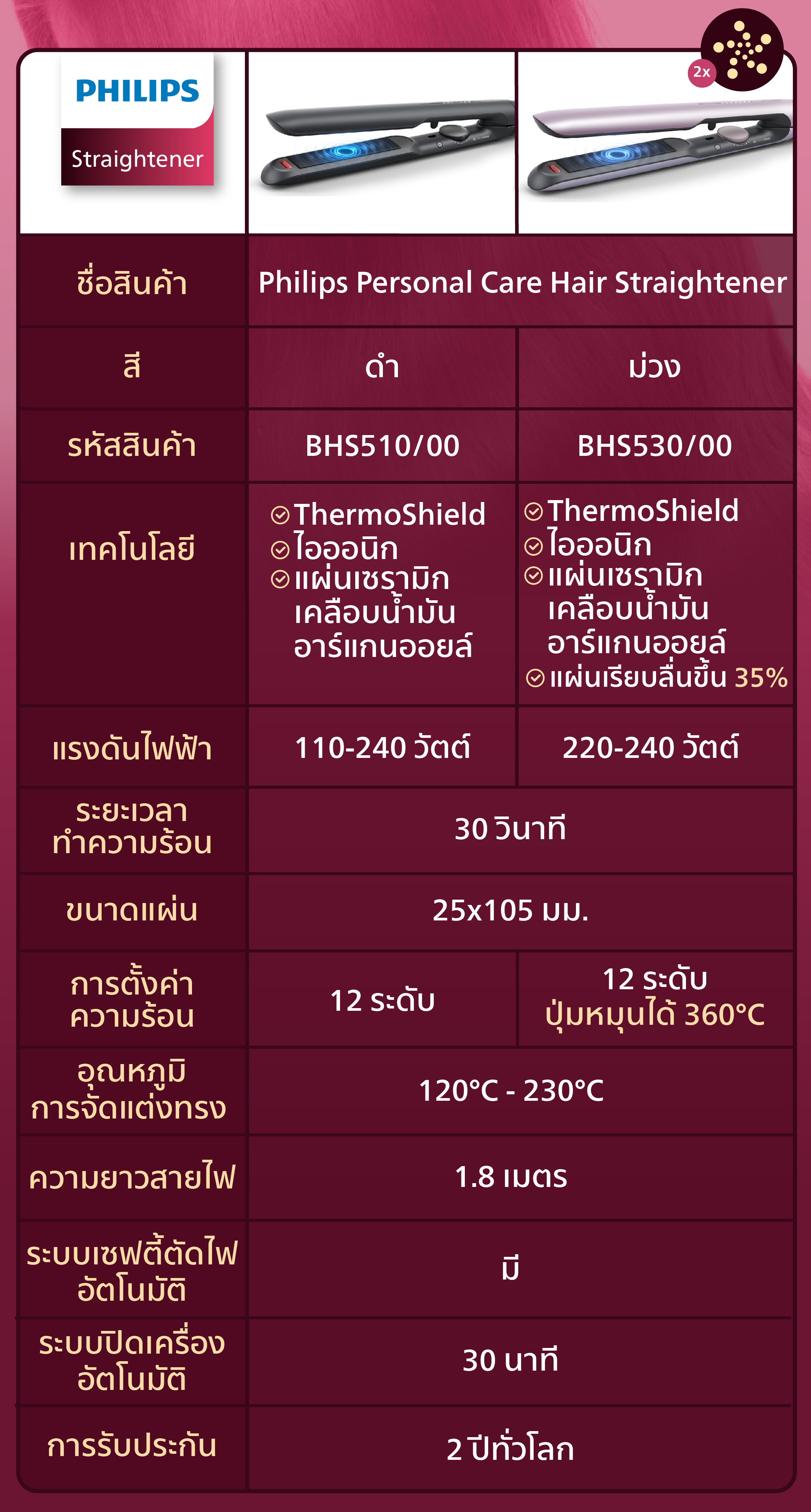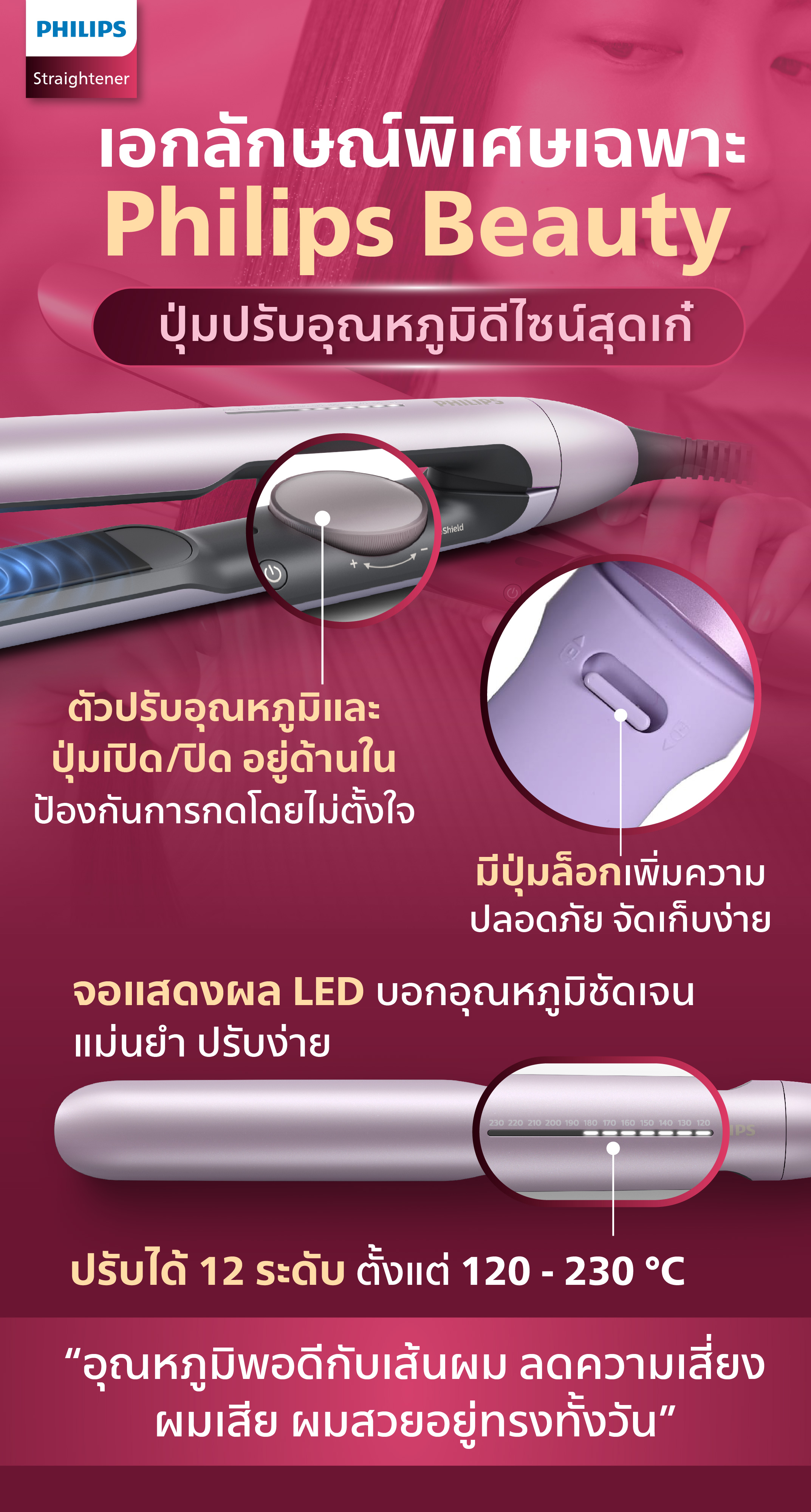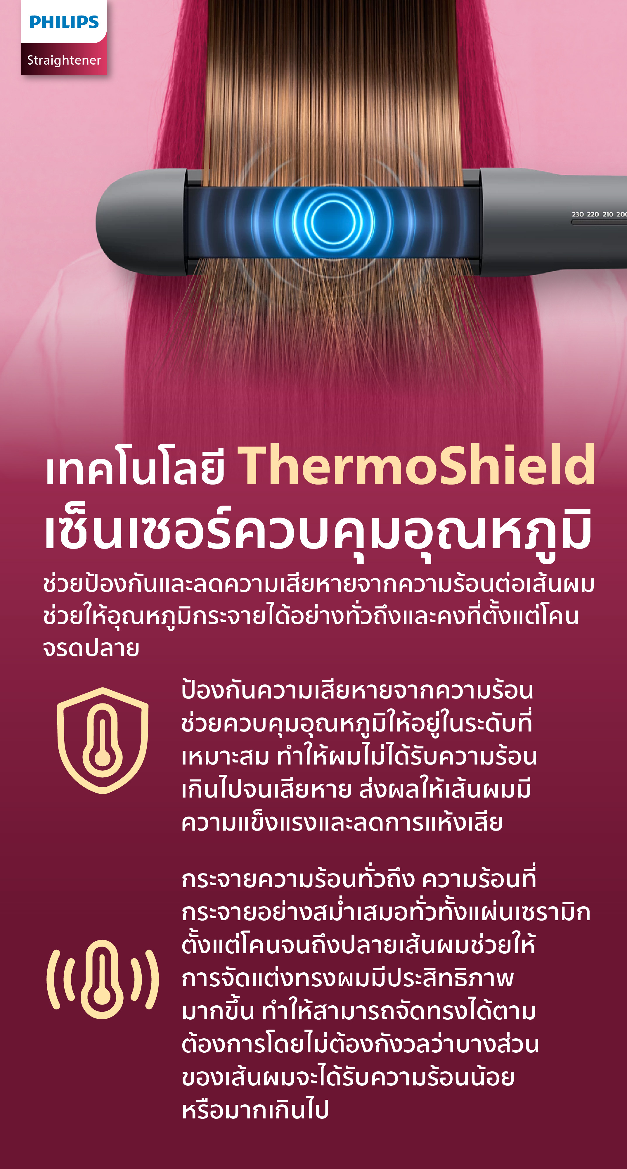 อุณหภูมิการจัดแต่งทรง : 120°C - 230°C