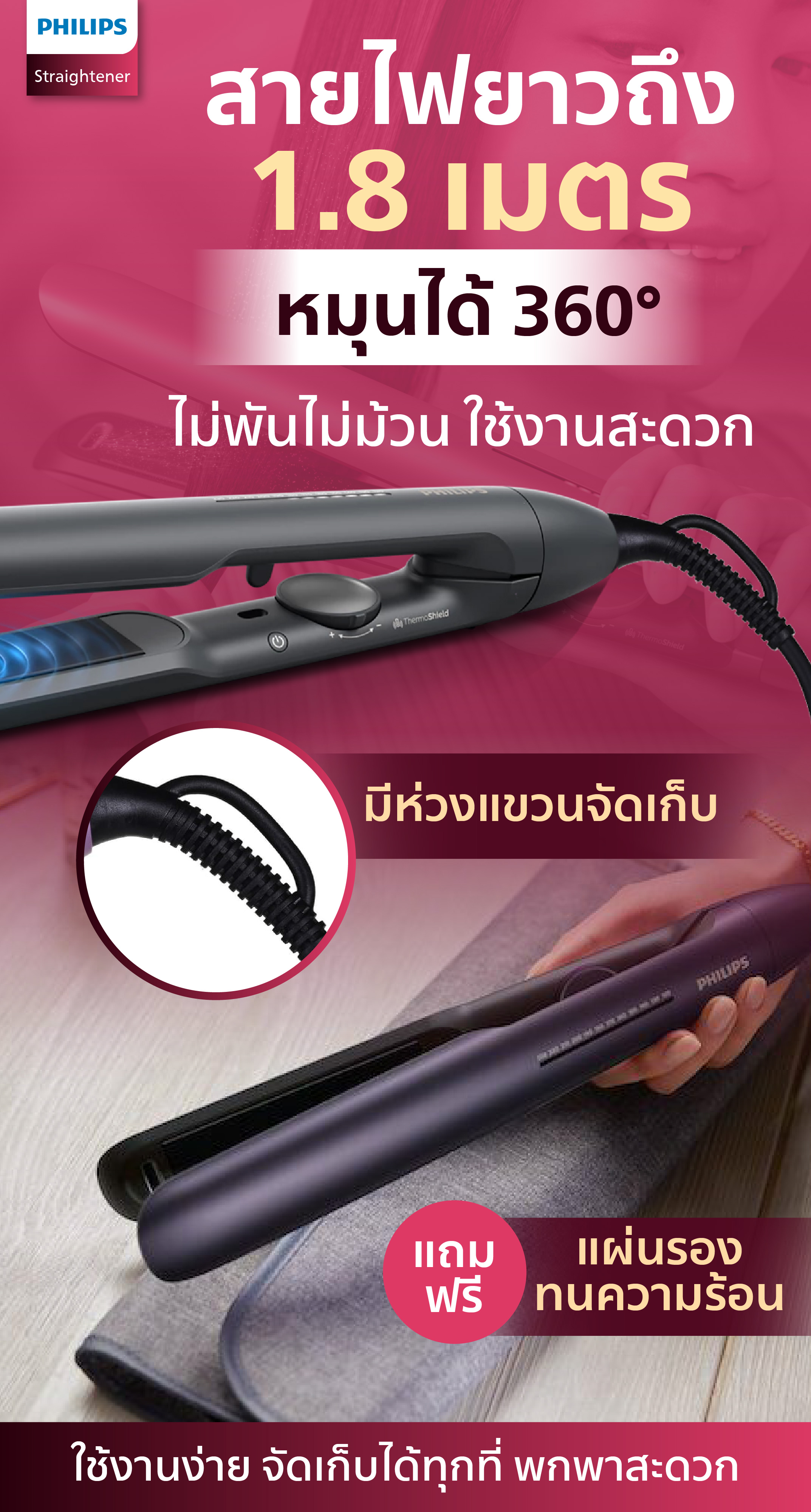 🔌สายไฟยาวถึง 1.8 เมตร หมุนได้ 360°