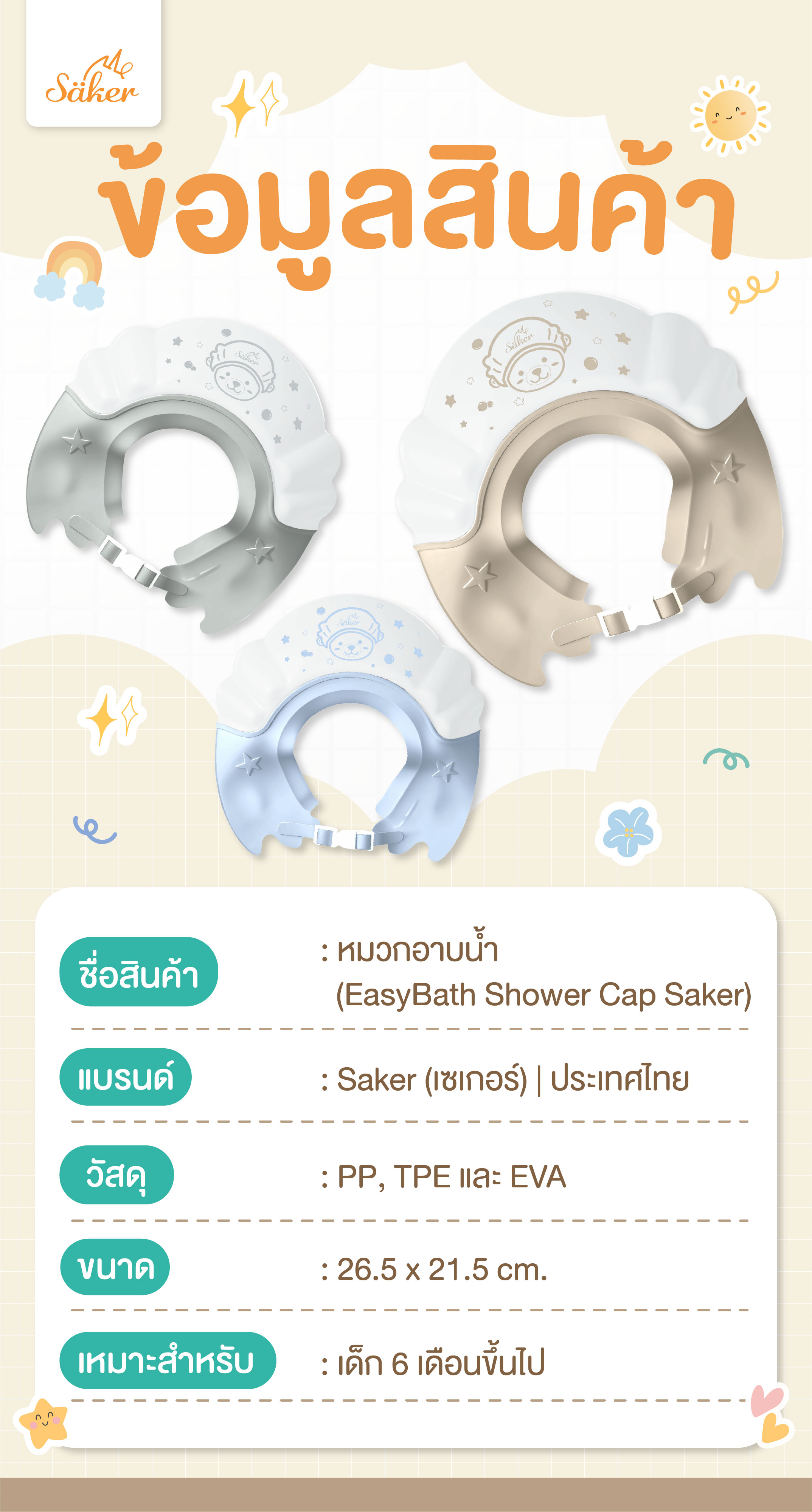 Säker หมวกอาบน้ำเด็ก EasyBath Shower Cap🛀🫧