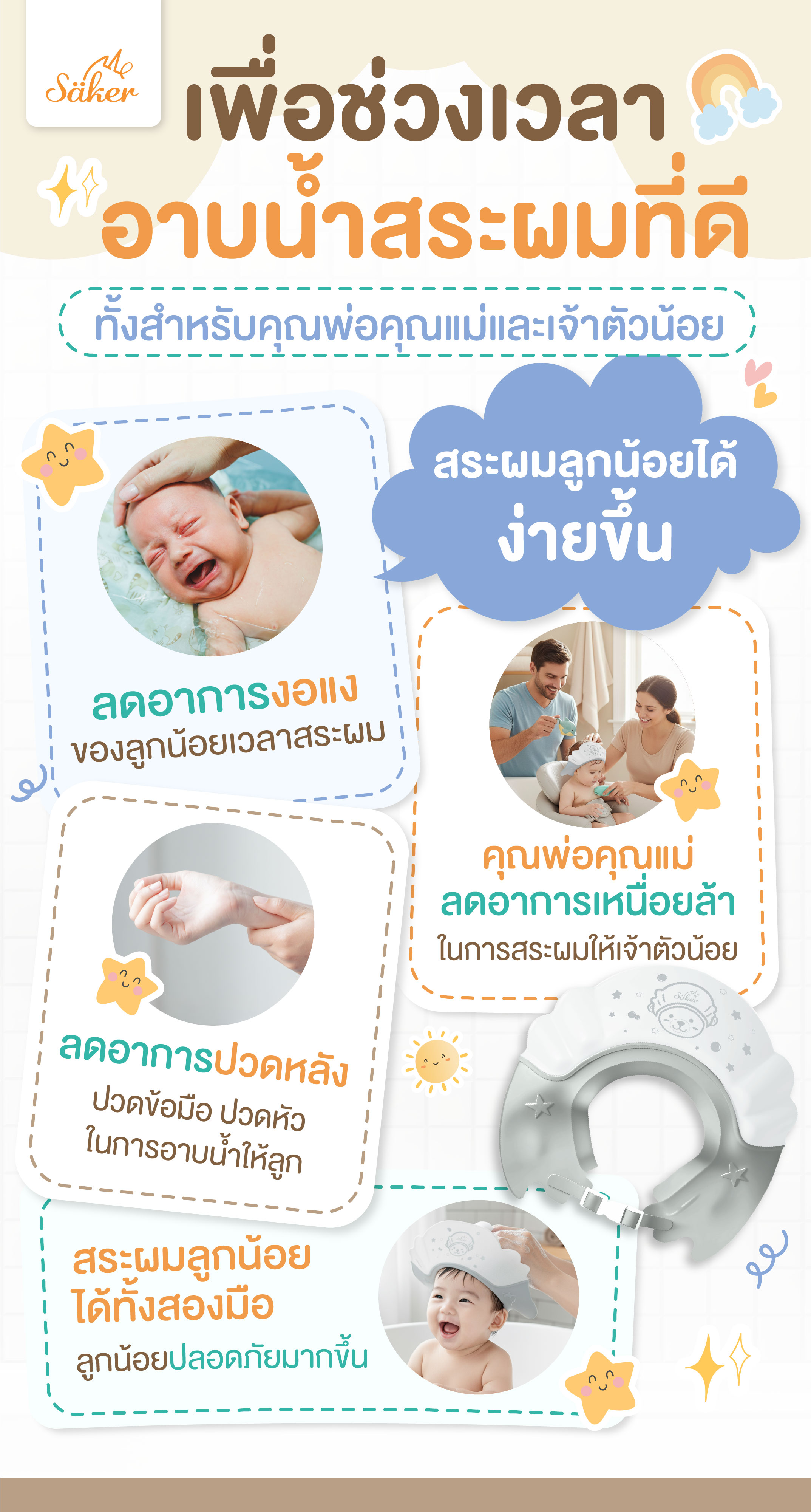 ทั้งป้องกันน้ำและแชมพูไหลเข้าตา และทำให้ลูกน้อย สบายตัวทุกการสระผม