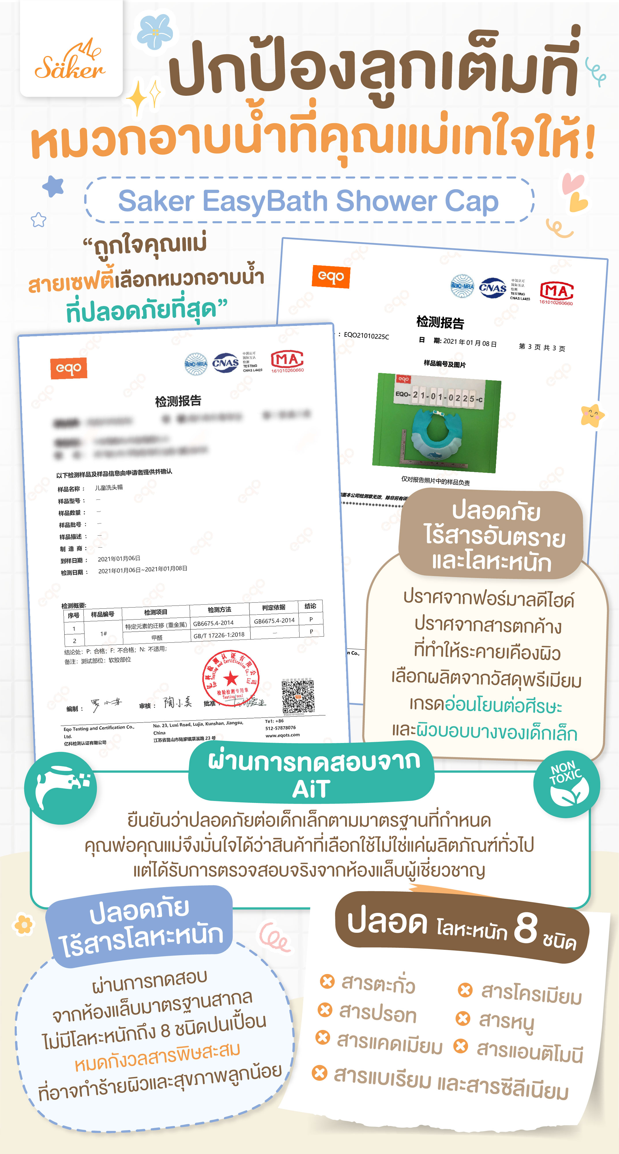 “ถูกใจคุณแม่สายเซฟตี้ เลือกหมวกอาบน้ำที่ปลอดภัยที่สุด Säker EasyBath Shower Cap”