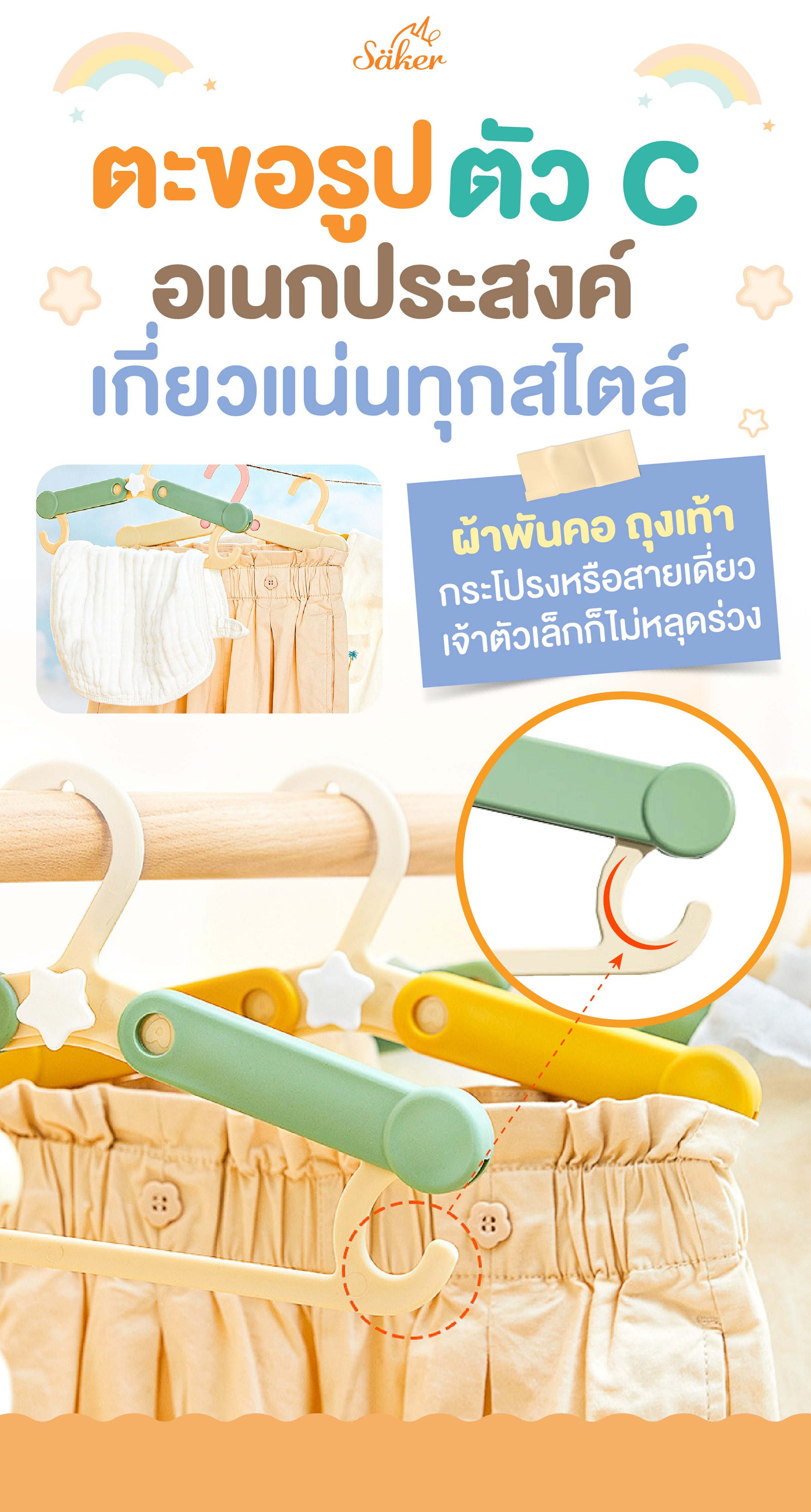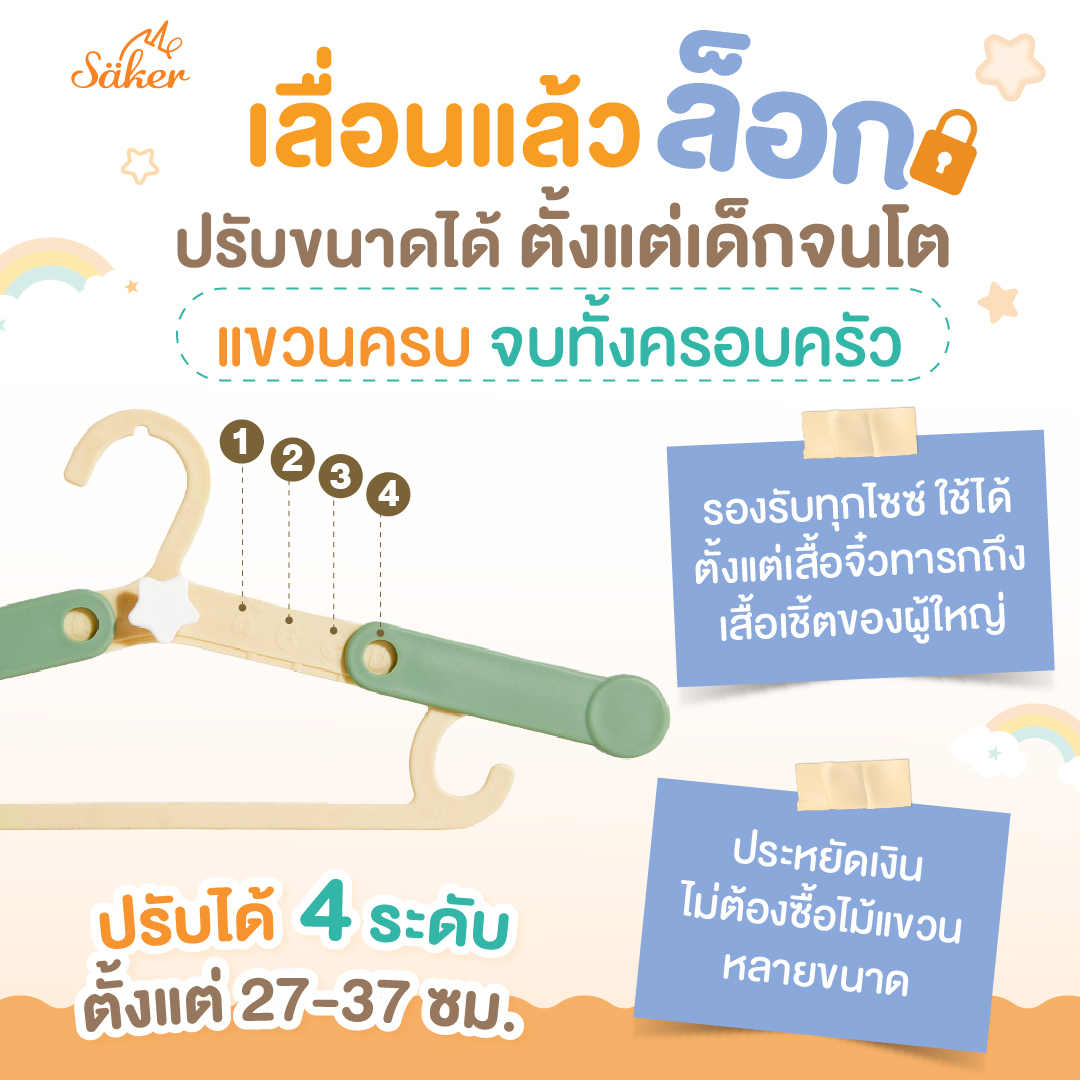 🌟 Saker Multi-Size Kids Hanger ไม้แขวนเสื้อเด็กปรับขนาดได้