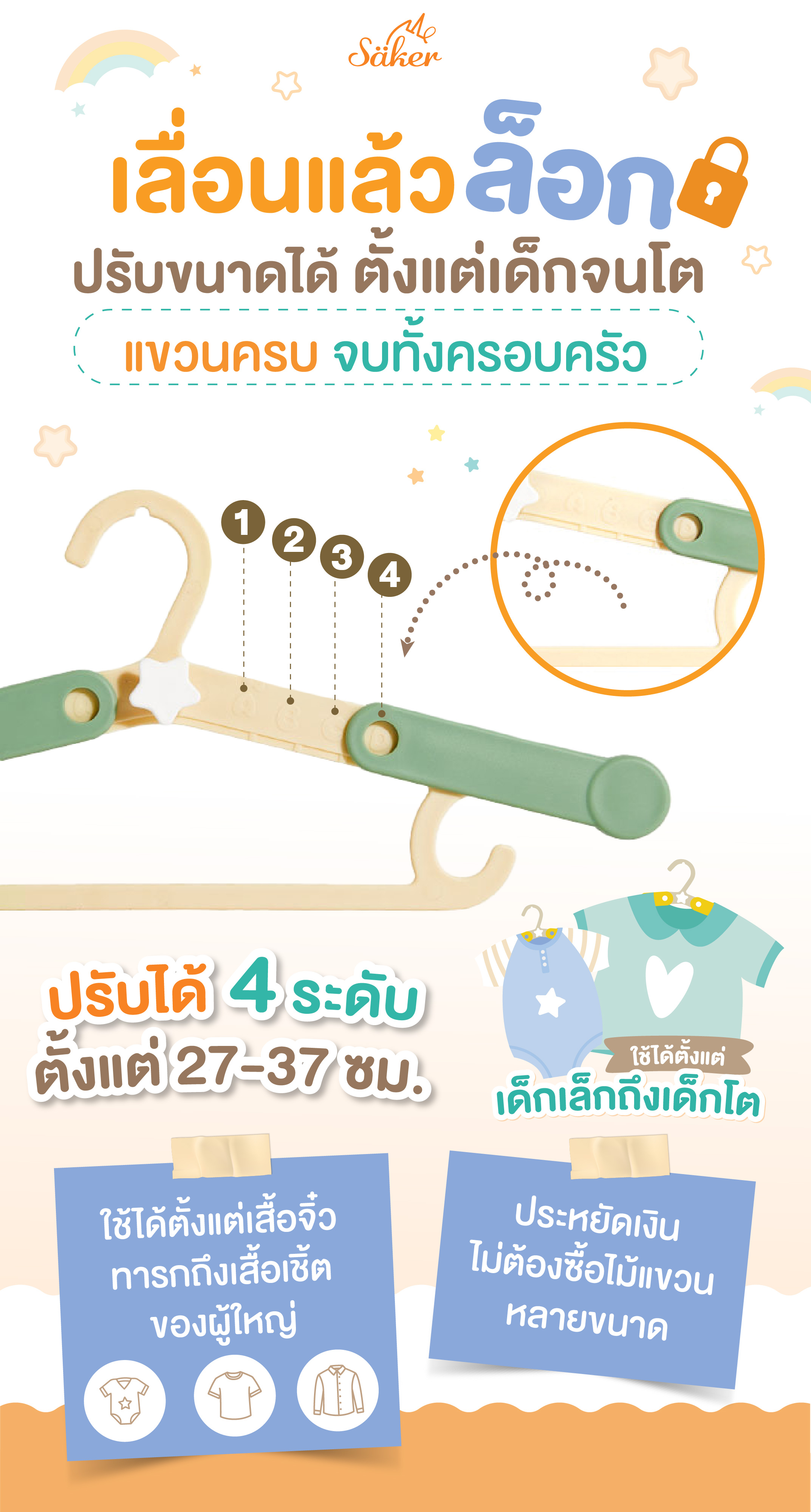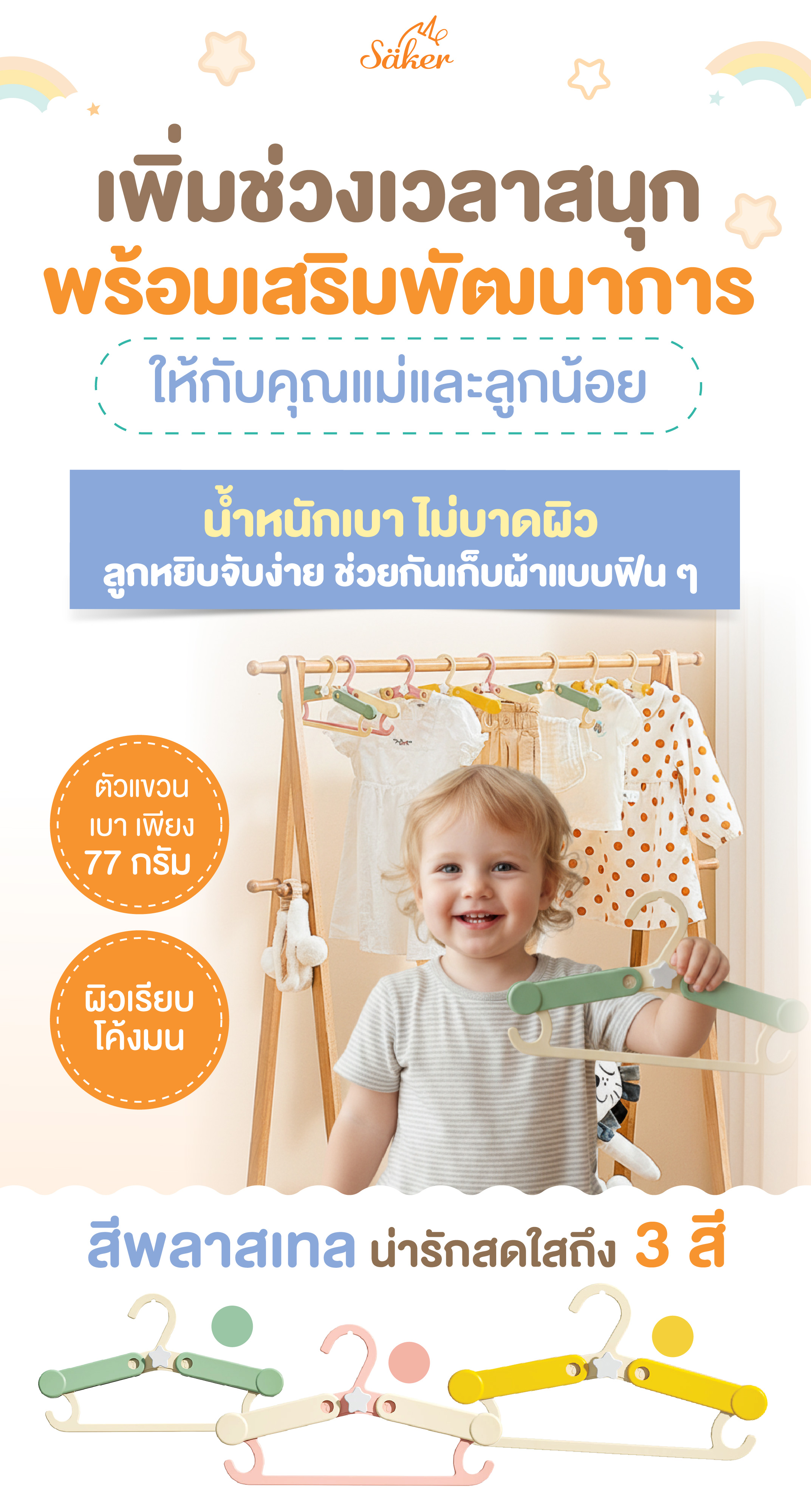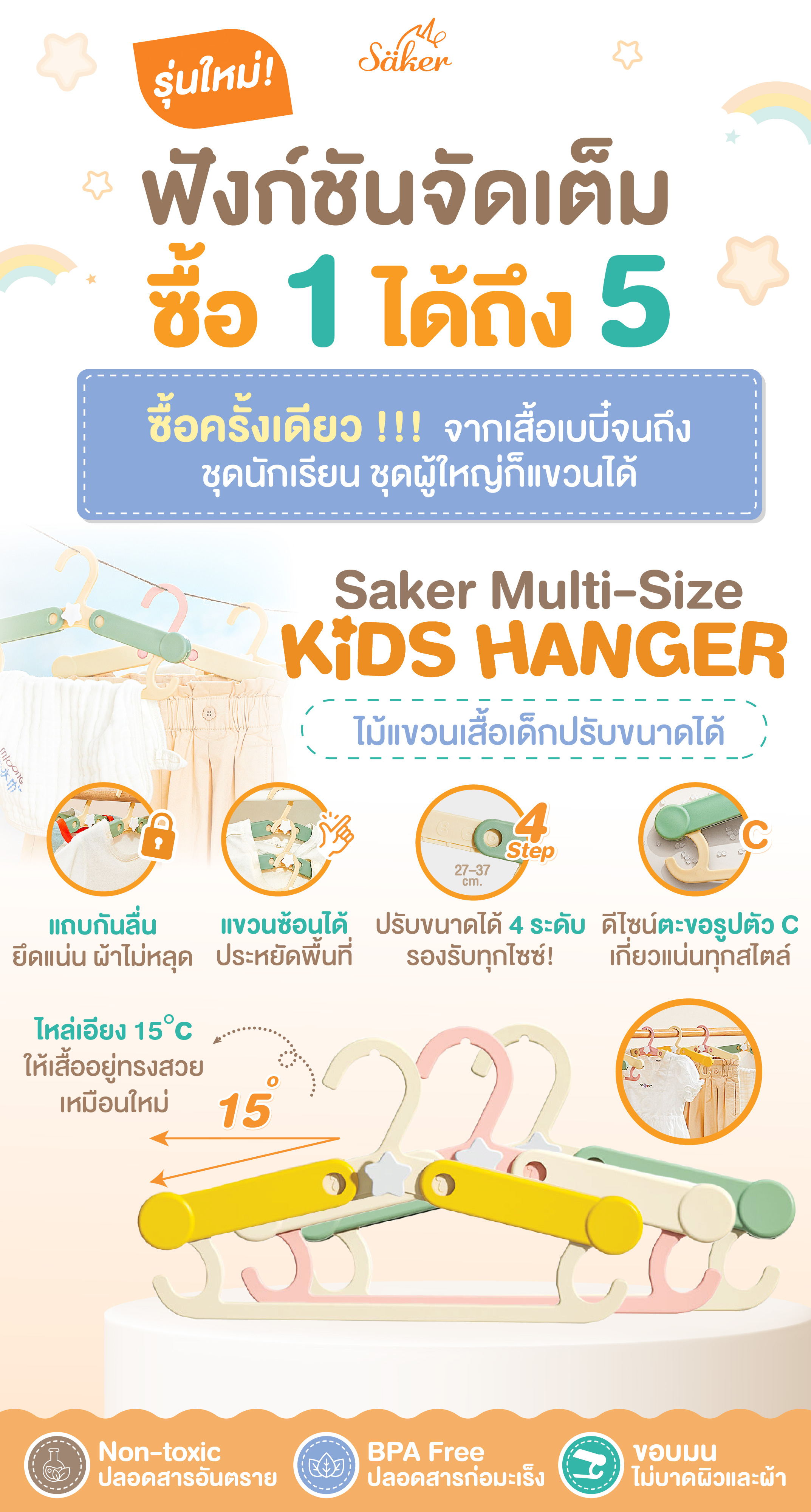 Saker Multi-Size Kids Hanger คือ ไม้แขวนที่เติบโตไปพร้อมกันลูกน้อย