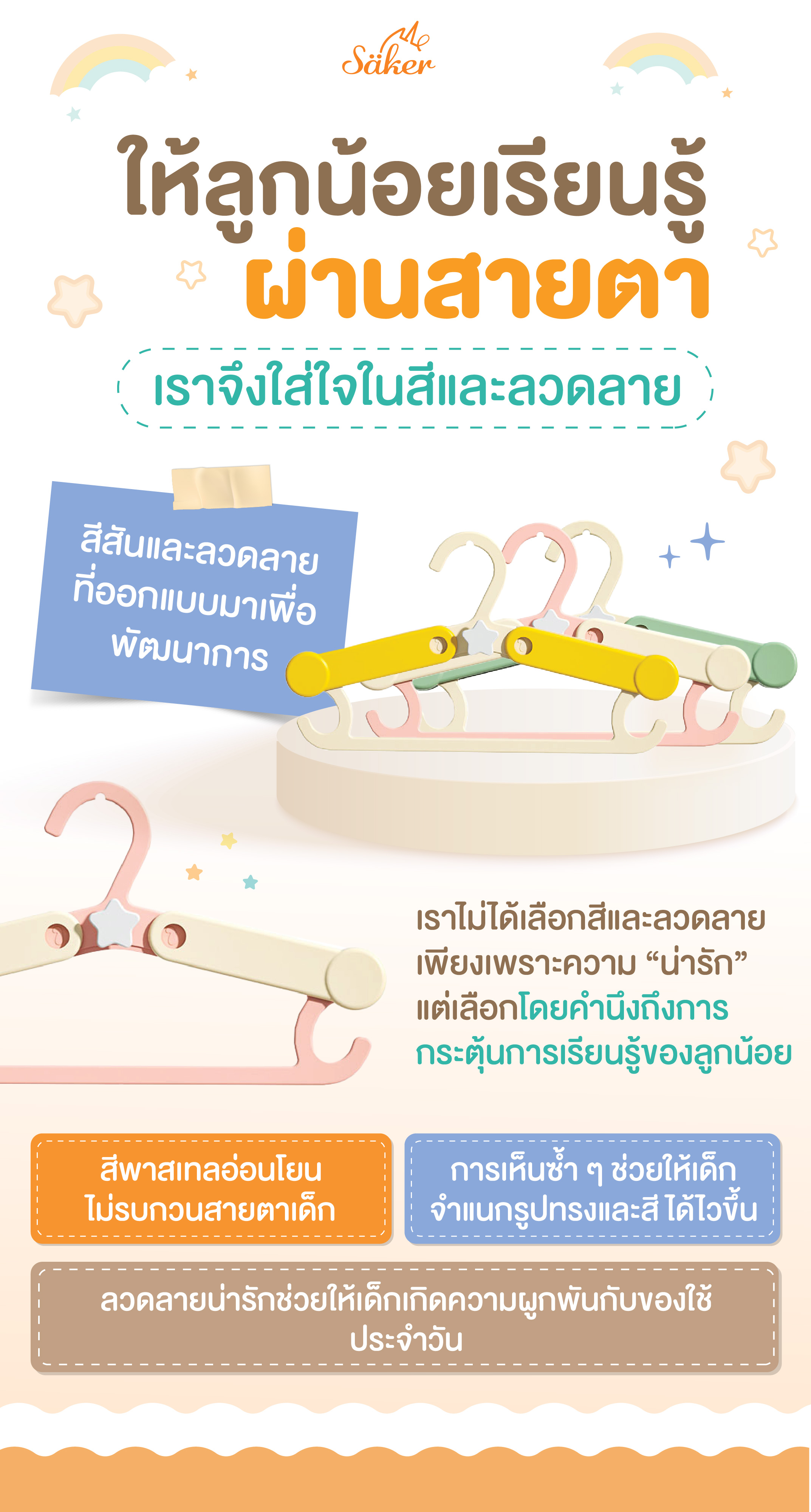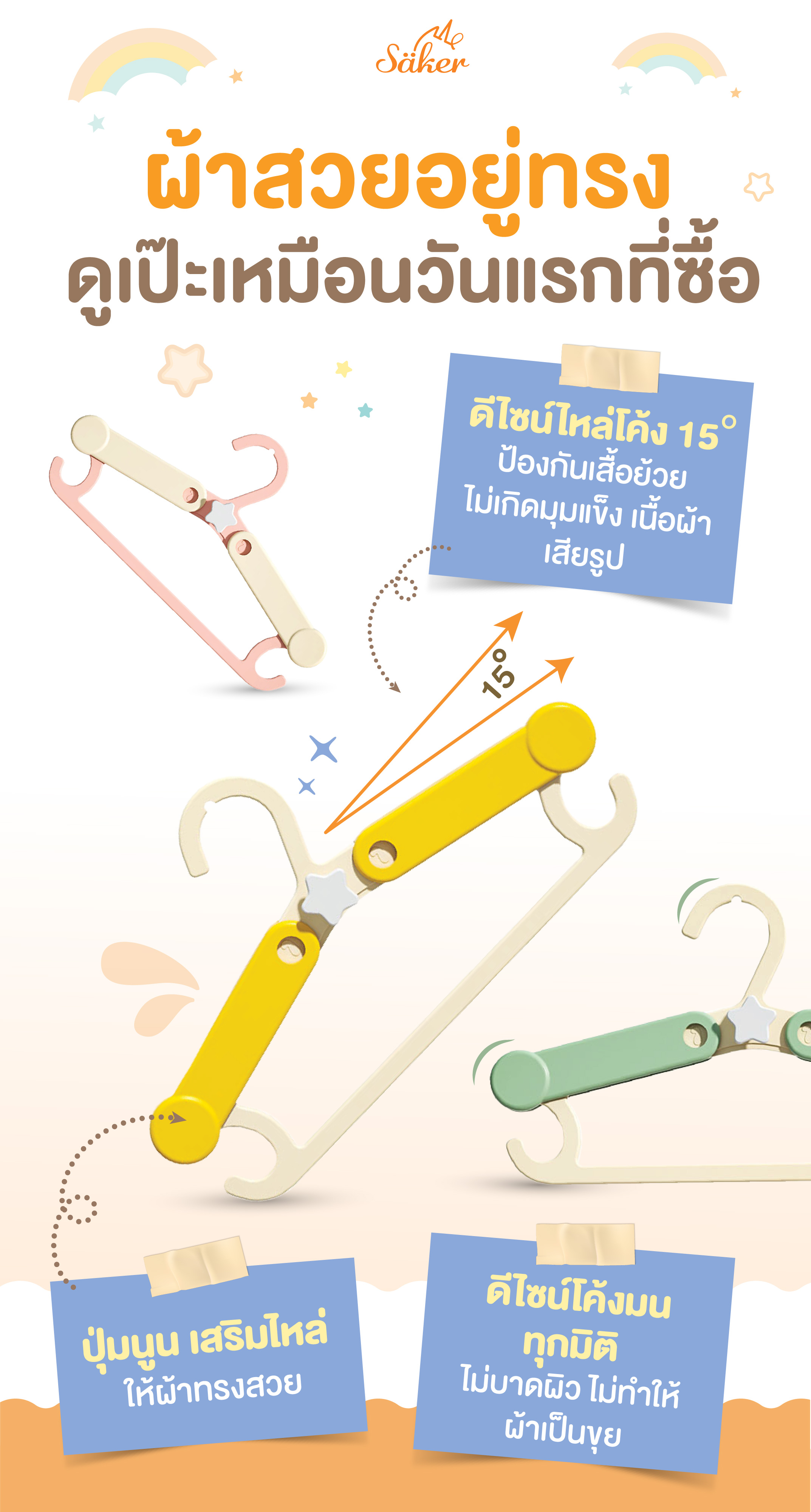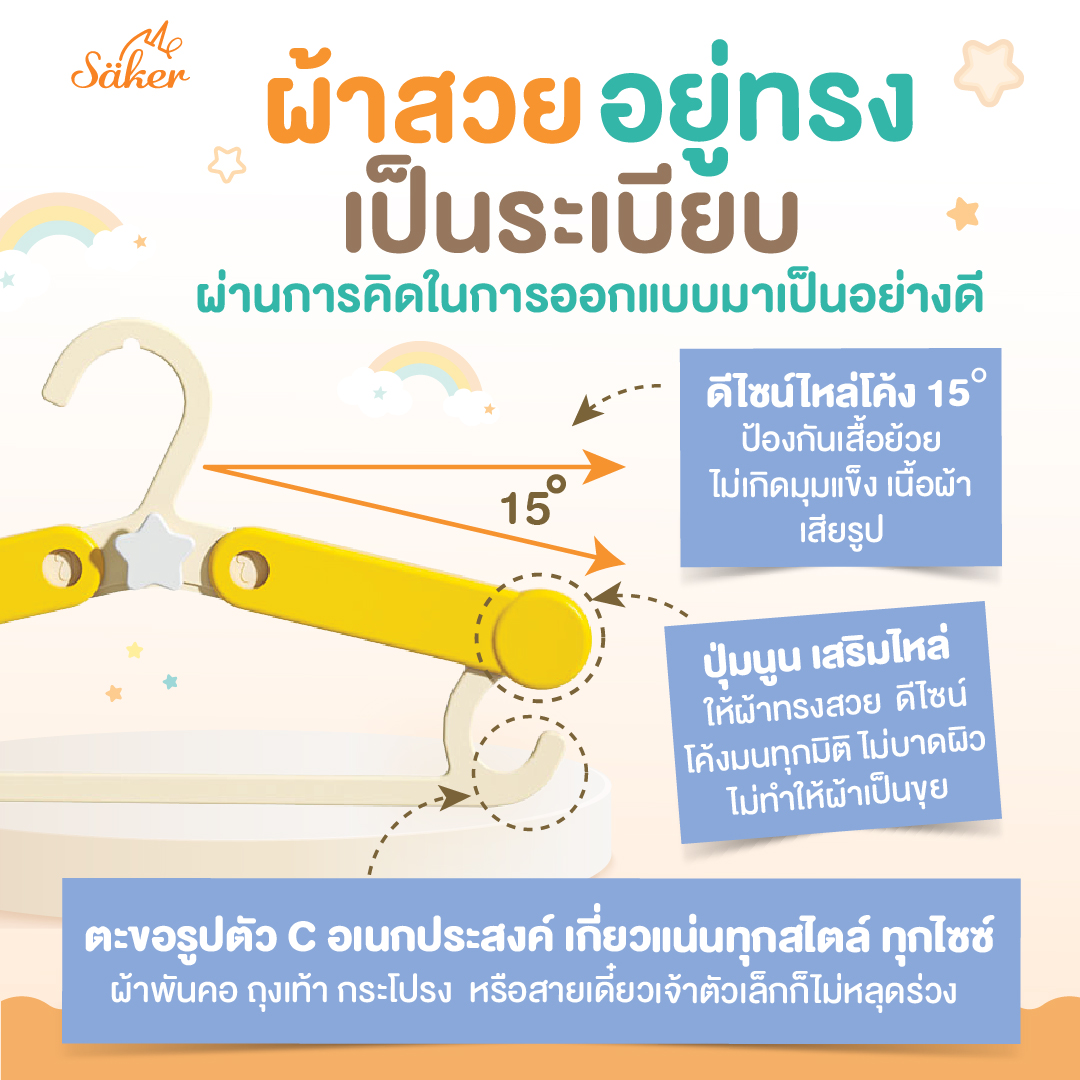 Saker Multi-Size Kids Hanger คือ ไม้แขวนที่เติบโตไปพร้อมกันลูกน้อย