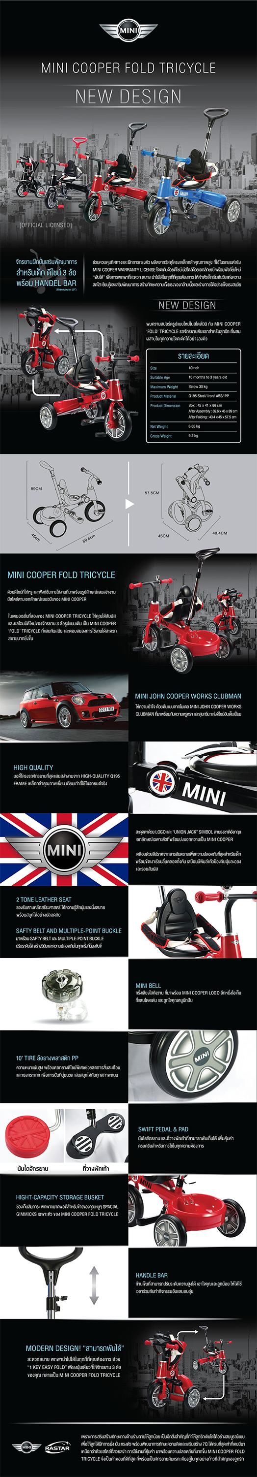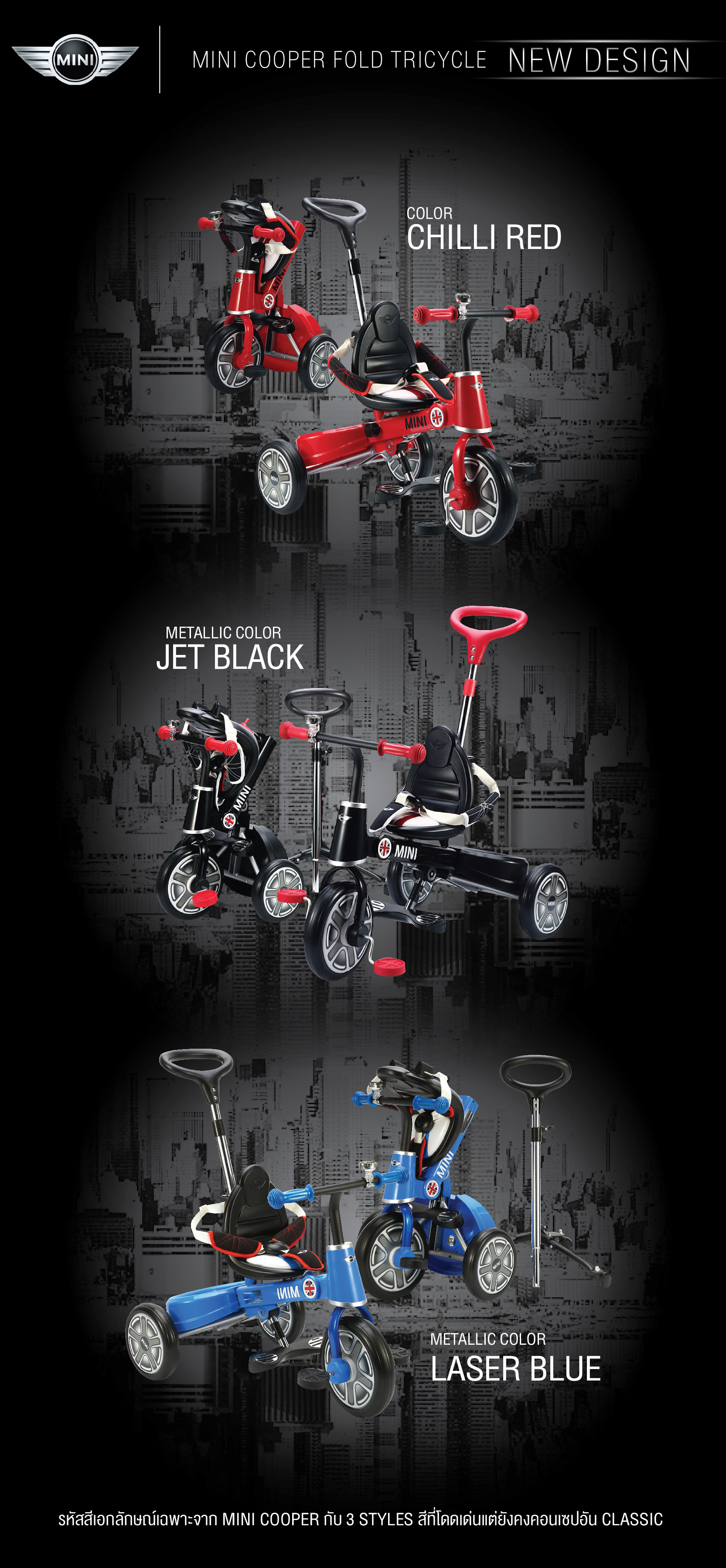 จักรยาน MINI COOPER Fold Tricycle ลิขสิทธิ์แท้ ของแท้ รุ่น 10’Tricycle Bike จักรยานฝึกปั่นที่ดีที่สุดสำหรับเด็ก 10เดือน-3ปี สินค้ามีวางจำหน่ายในหลายประเทศทั่วโลก